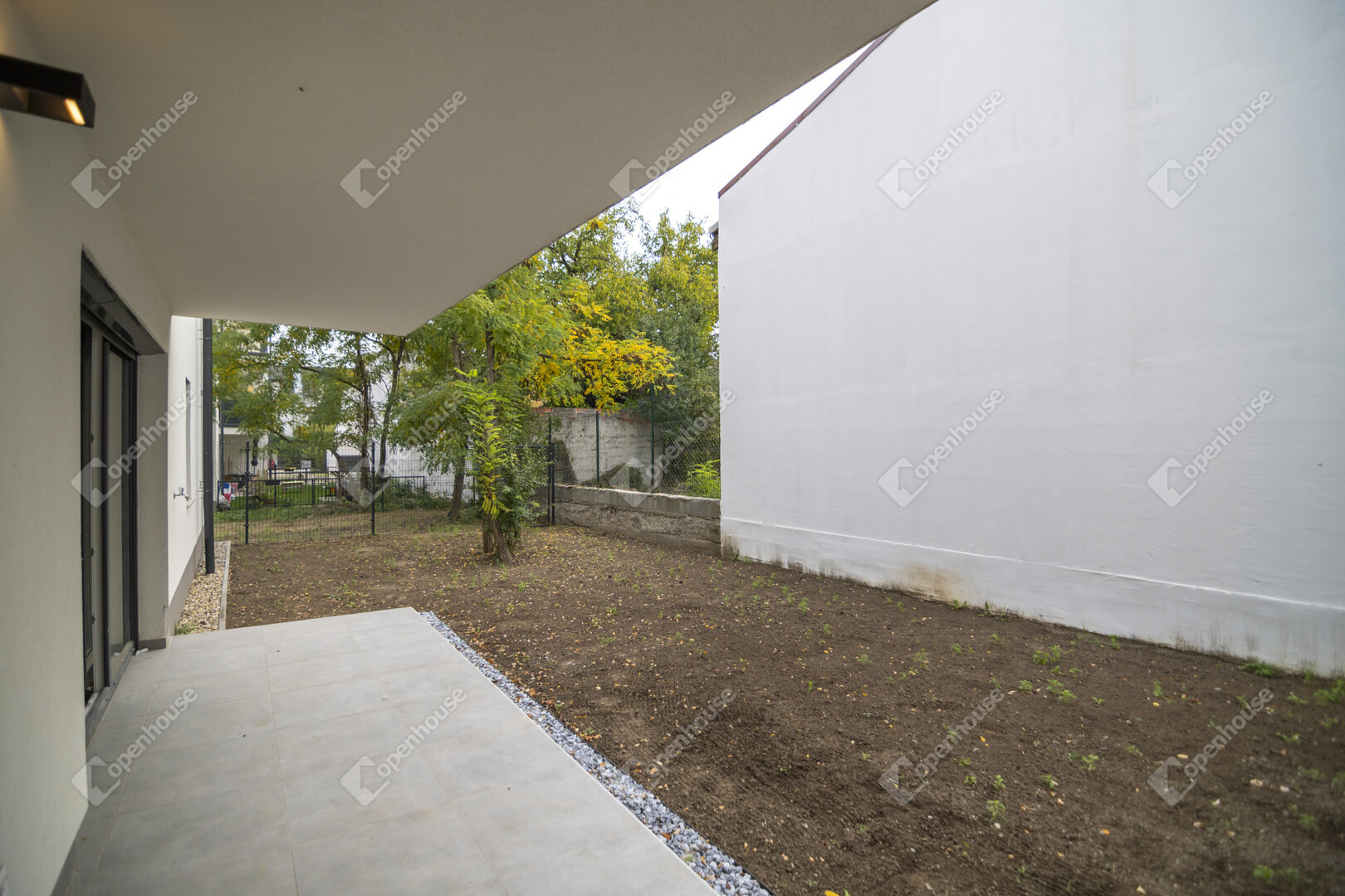 A lakáshoz tartozik egy 13 m²-es tágas terasz, egy saját, elkerített kertrész, valamint a terem garázsban egy beállóhely és egy önálló, zárható tároló.