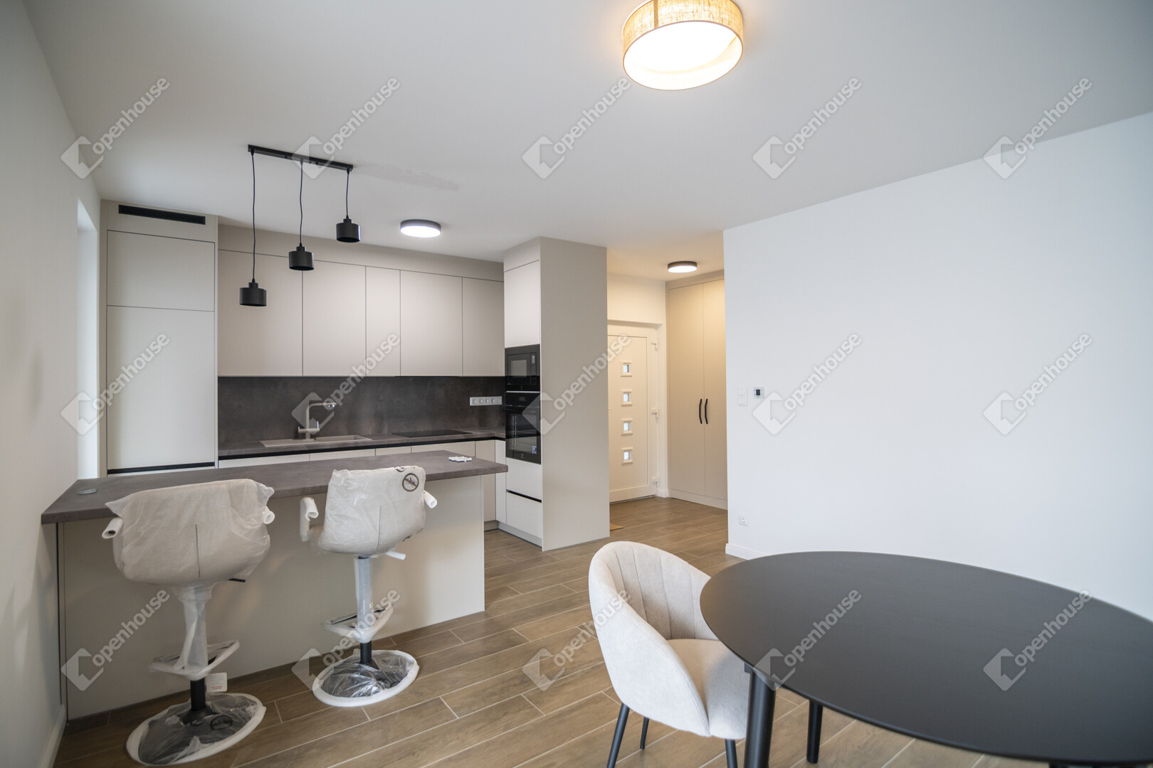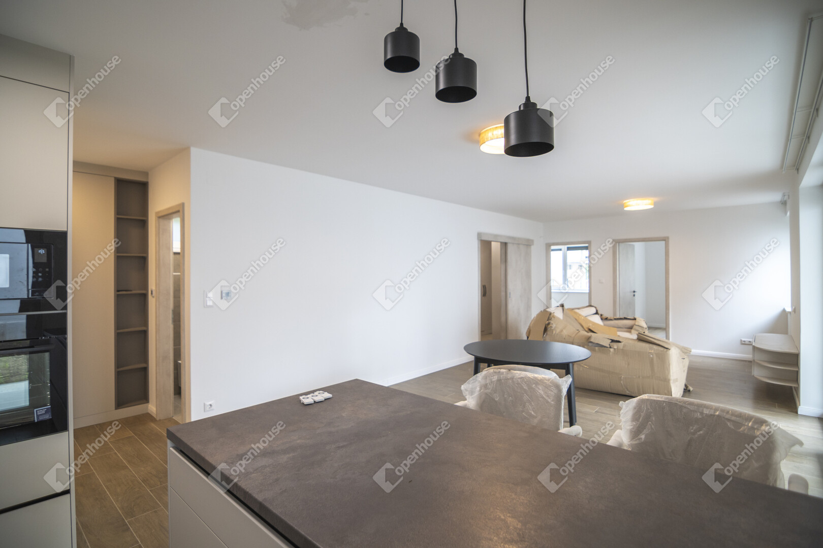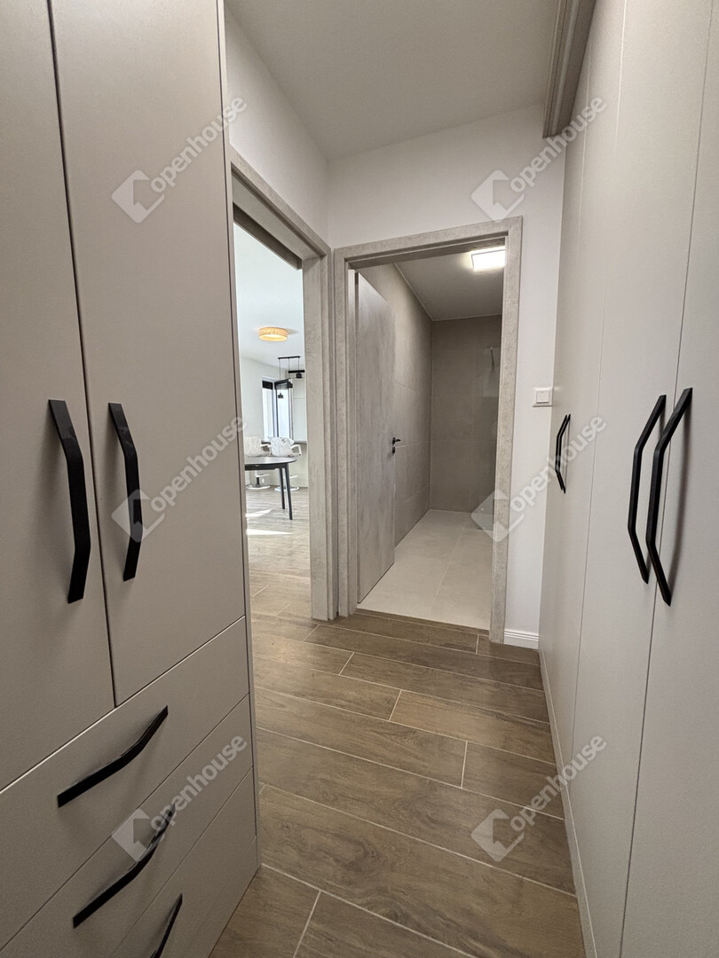 A belső tér tágas nappali–étkező–konyha együttesből, két hálószobából, külön fürdőből és mellékhelyiségből áll. A konyha vadonatúj, beépített konyhabútorral és konyhaszigettel rendelkezik, a gardróbok szintén beépítettek.