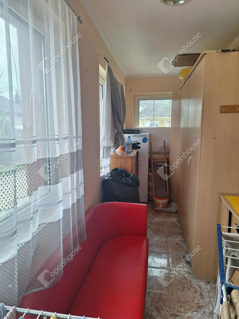 Az ingatlan elosztását tekintve kiváló, a házba belépve egy kis előtérből nyílik a fürdő és a WC, a három különnyíló szoba, valamint a tágas - 58 négyzetméteres - amerikai konyha- étkező- nappali.