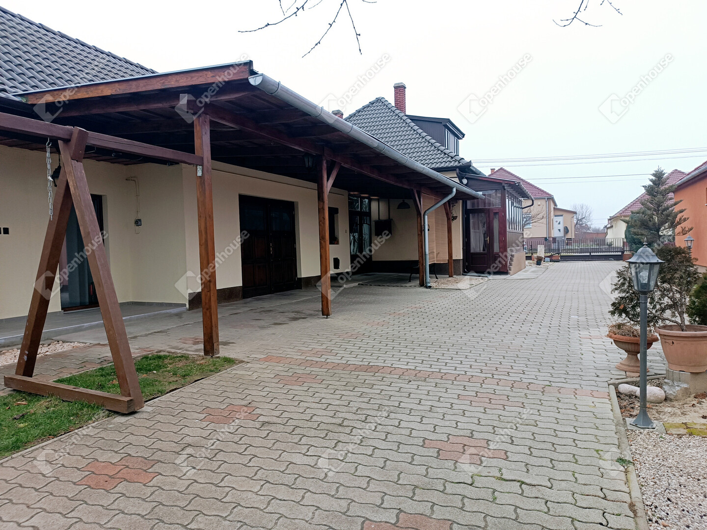 - 800 nm gondozott terület, térkövezett bejáró, örökzöldek, elektromos kapu, több autó számára parkolási lehetőség. 1 garázs, több fedett beálló, szerszámtároló, kerti tároló