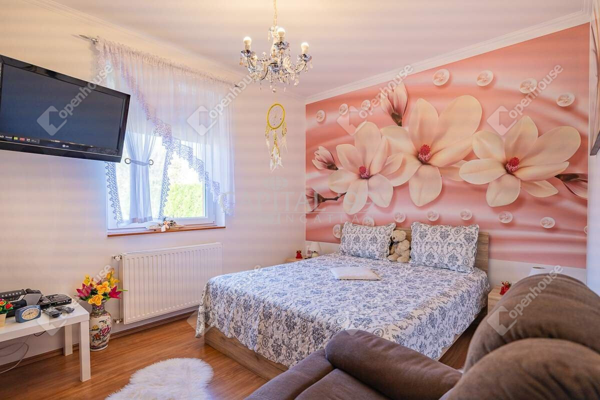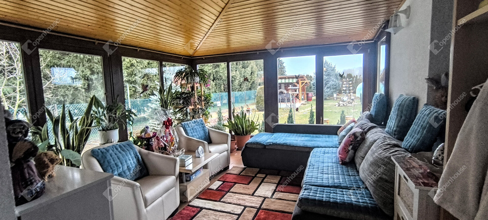 Elosztása - 2 hálószoba,tágas nappali, amerikai konyha-étkező , fürdőszoba, kamra, beépített télikert, garázs.