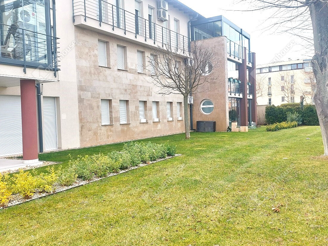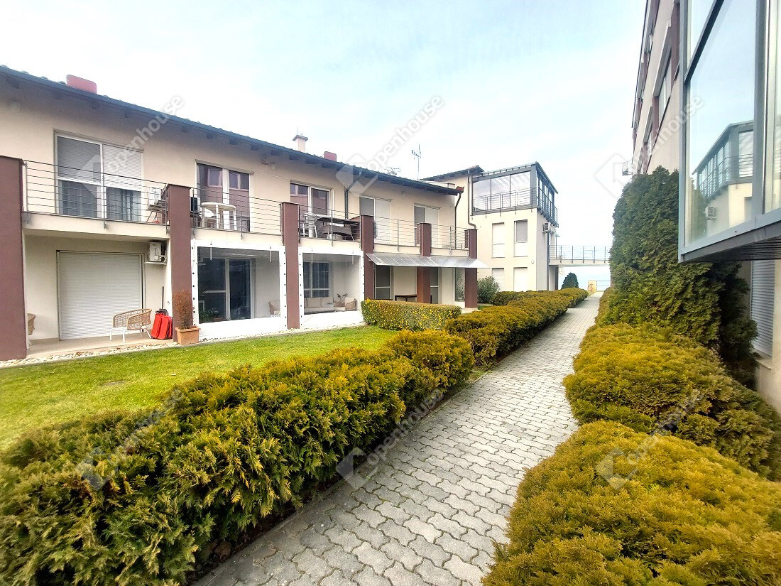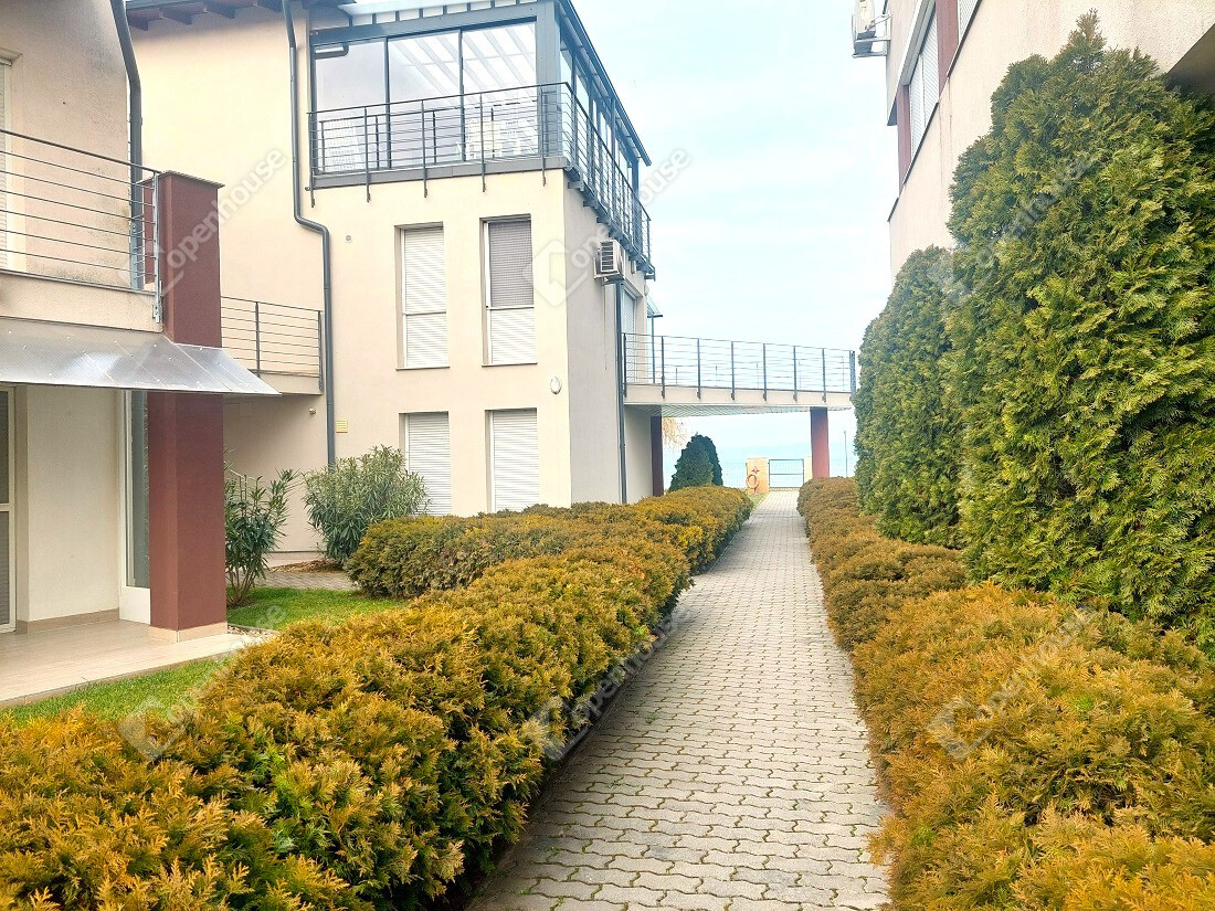 A társasház kertje szépen karban tartott, gyönyörű növényekkel beültetett, a gyerekeknek felszerelt játszótérrel áll rendelkezésre. A lakáshoz egy gépkocsi számára, számozott parkolóhely tartozik. A biztonságos zárt kertből, számkódos kapun keresztül, közvetlenül kijuthatunk a strandra.