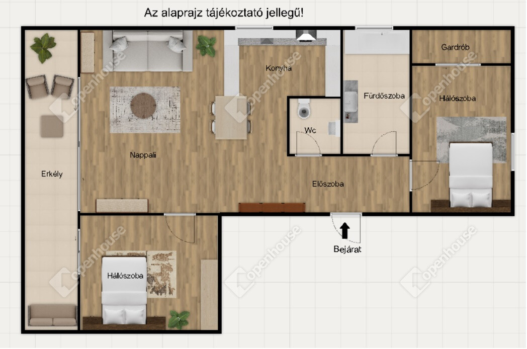 A lakás világos, nagyon jó elosztású, amerikai konyhás nappali, 2 hálószoba, kádas fürdőszoba és egy külön wc. A terasz remekül berendezhető 12nm-es, és a csodálatos részpanorámáról sem feledkezzünk el.