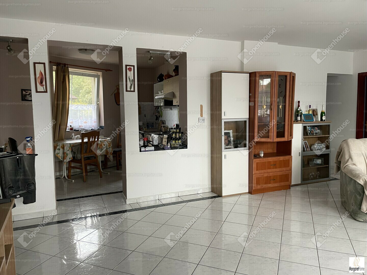 Földszinten, kertkapcsolatos nappali nagy terasszal, 2 hálószoba, fürdő, wc, konyha-étkező, kamra előtér, lépcsőház, kültéri terasz, garázs, ami nyaranként külön bejáratú, komfortos lakásként funkcionál (szoba, konyha, fürdő wc-vel).