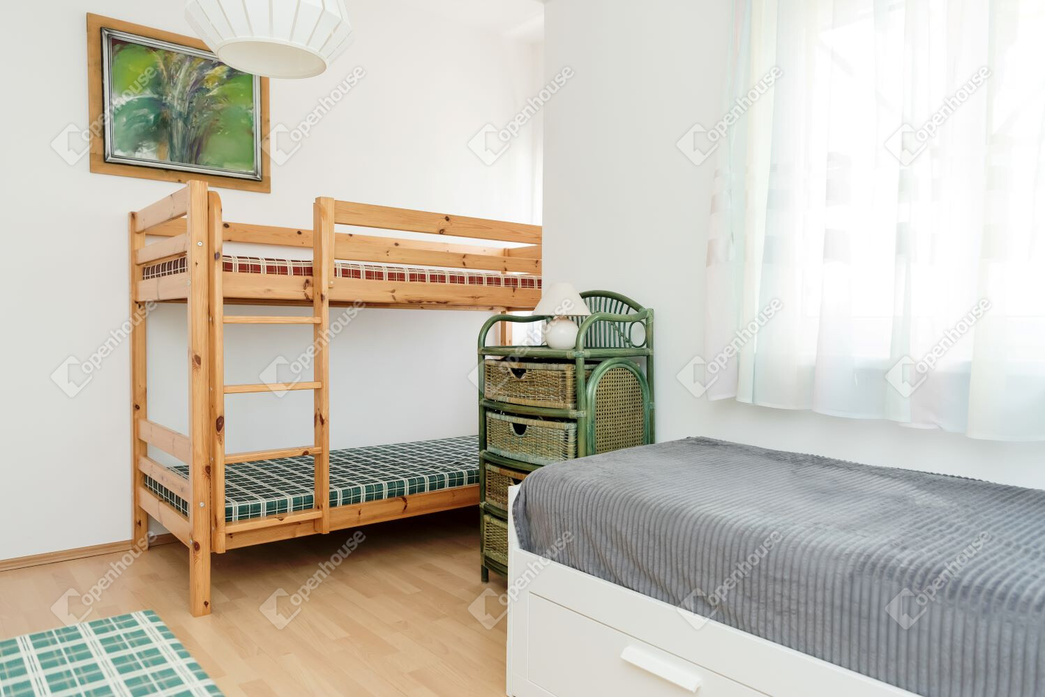 REMEK elrendezésének köszönhetően a földszinten is kialakítottak egy hálószobát, azon családtagoknak, akik nem szeretnének lépcsőzni.