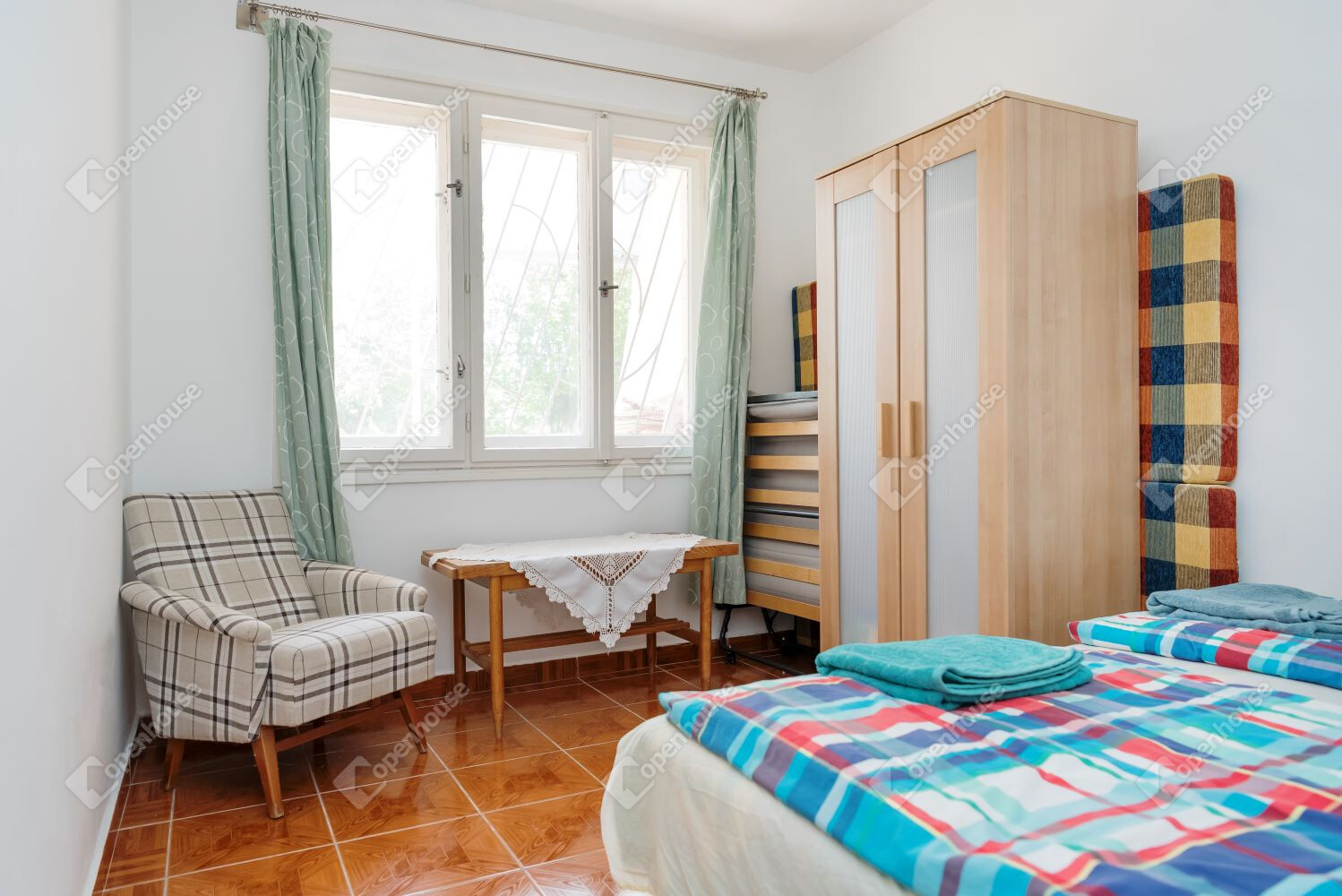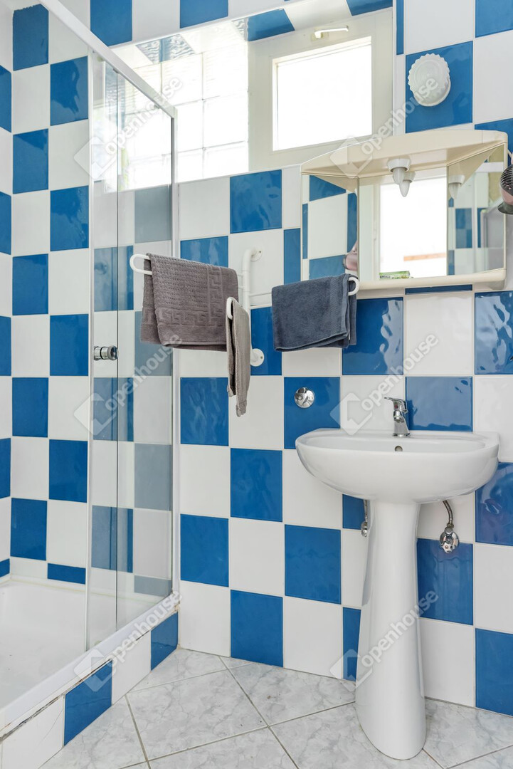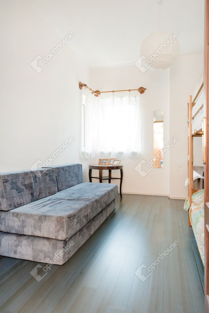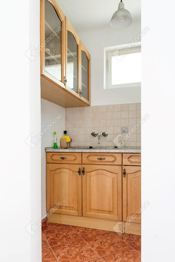 A hozzá épült egyszintes épület nappaliból, 2 hálószobából, konyhából és fürdőszobából áll. A két épület elszeparált, akár külön is funkcionál.