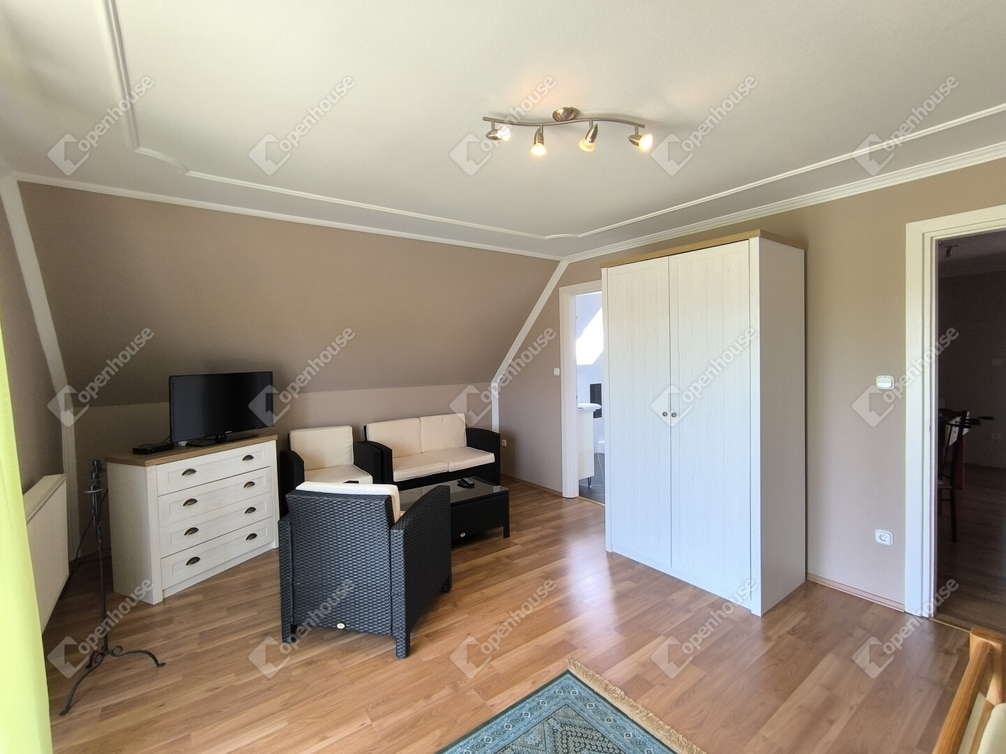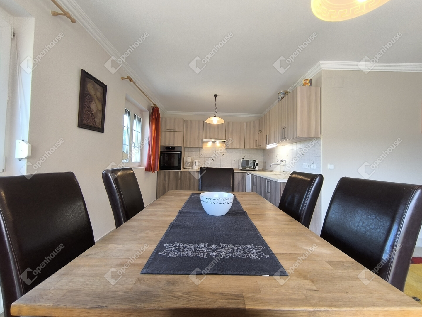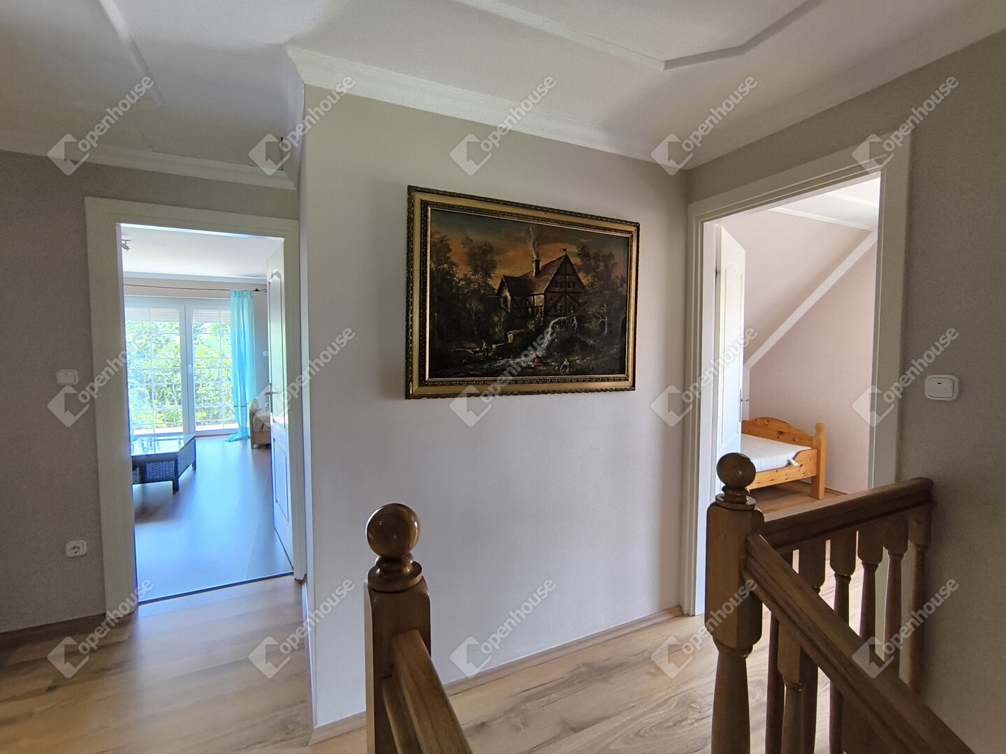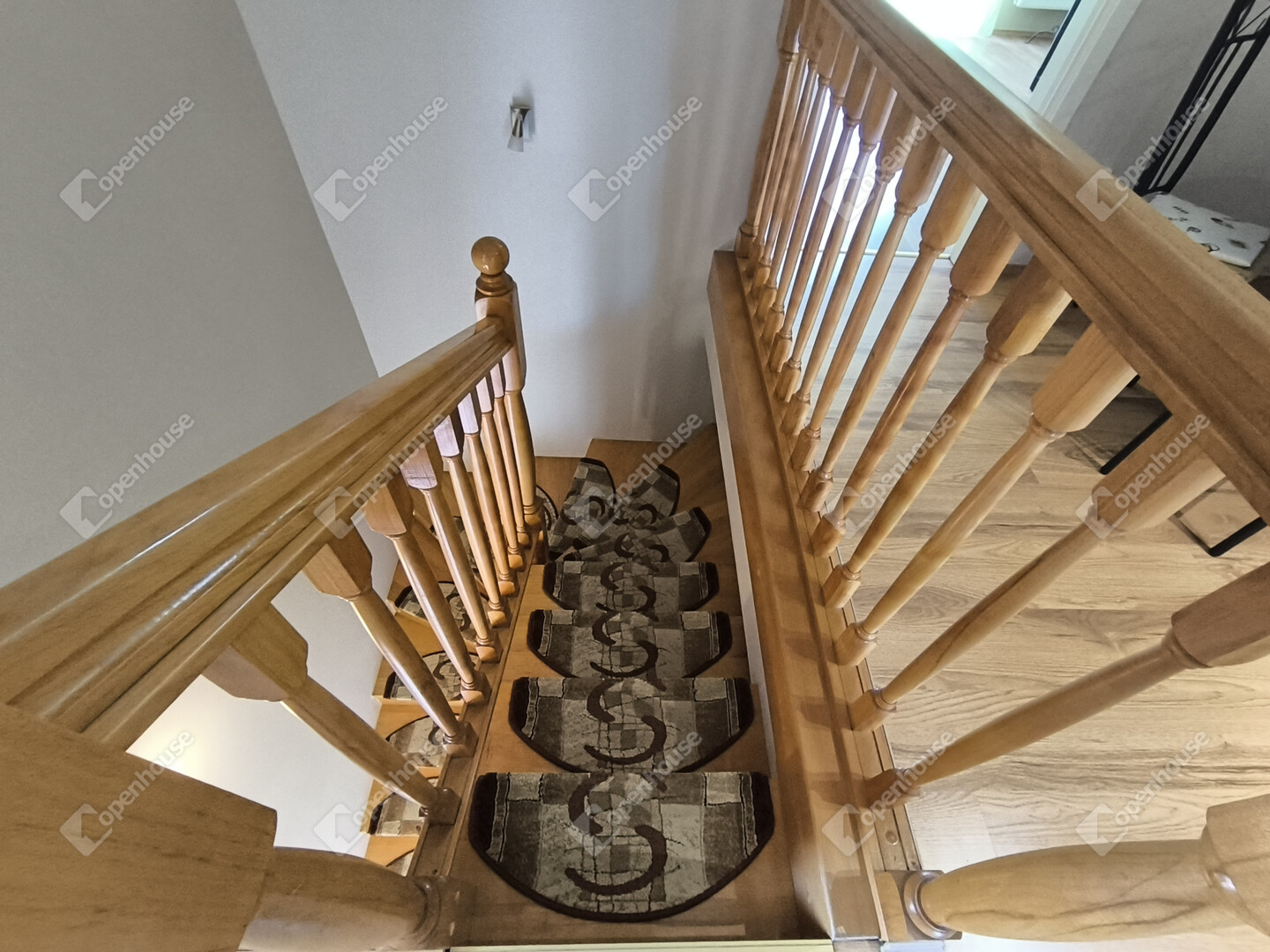 A tágas nappali a családi összejövetelek ideális helyszíne, míg a 36 négyzetméteres terasz tökéletes hely a reggeli kávézáshoz vagy a nyári baráti összejövetelekhez. A ház fűtése gáz cirkó rendszerrel megoldott, míg a nyári melegek elviseléséről klímaberendezés gondoskodik.