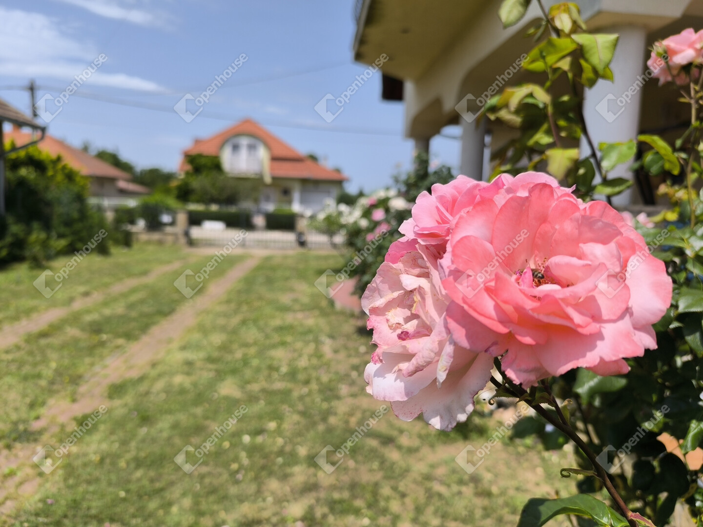 A szépen gondozott kerthez tartozik fedett gépkocsibeálló és szerszámtároló, így járműve és eszközei is biztonságban lehetnek. A kerítés és az erkélyek kovácsoltvasból készültek, az autóval történő bejárást elektromos működtetésű kapu biztosítja a ház udvarába. Ezen kívül a ház bővítési lehetőséget is kínál, így a jövőbeli terveit is megvalósíthatja. Az integrált szúnyoghálók pedig gondoskodnak arról, hogy a nyári estéken is zavartalanul élvezhesse a szabadban töltött időt anélkül, hogy a rovarok zavarnák Önt.