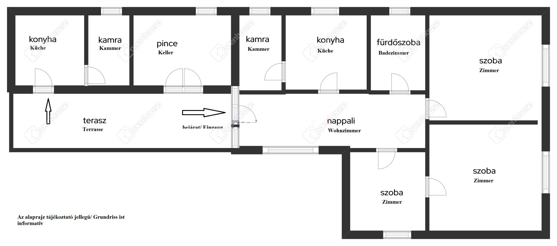 - a fedett teraszról külön bejárattal továbbá konyha, kamra és pince/padlásfeljáró helyiségek érhetők el (25,69nm)
