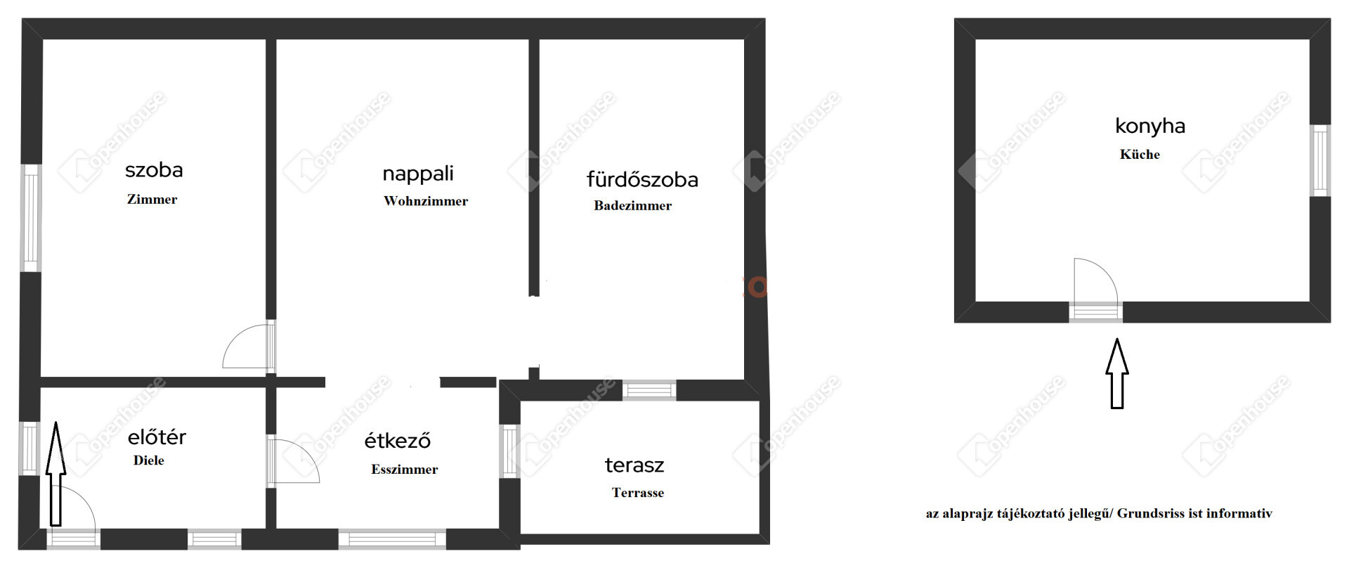 - 2 lakrészből áll (főépület és a külső kis épületben lévő konyha)