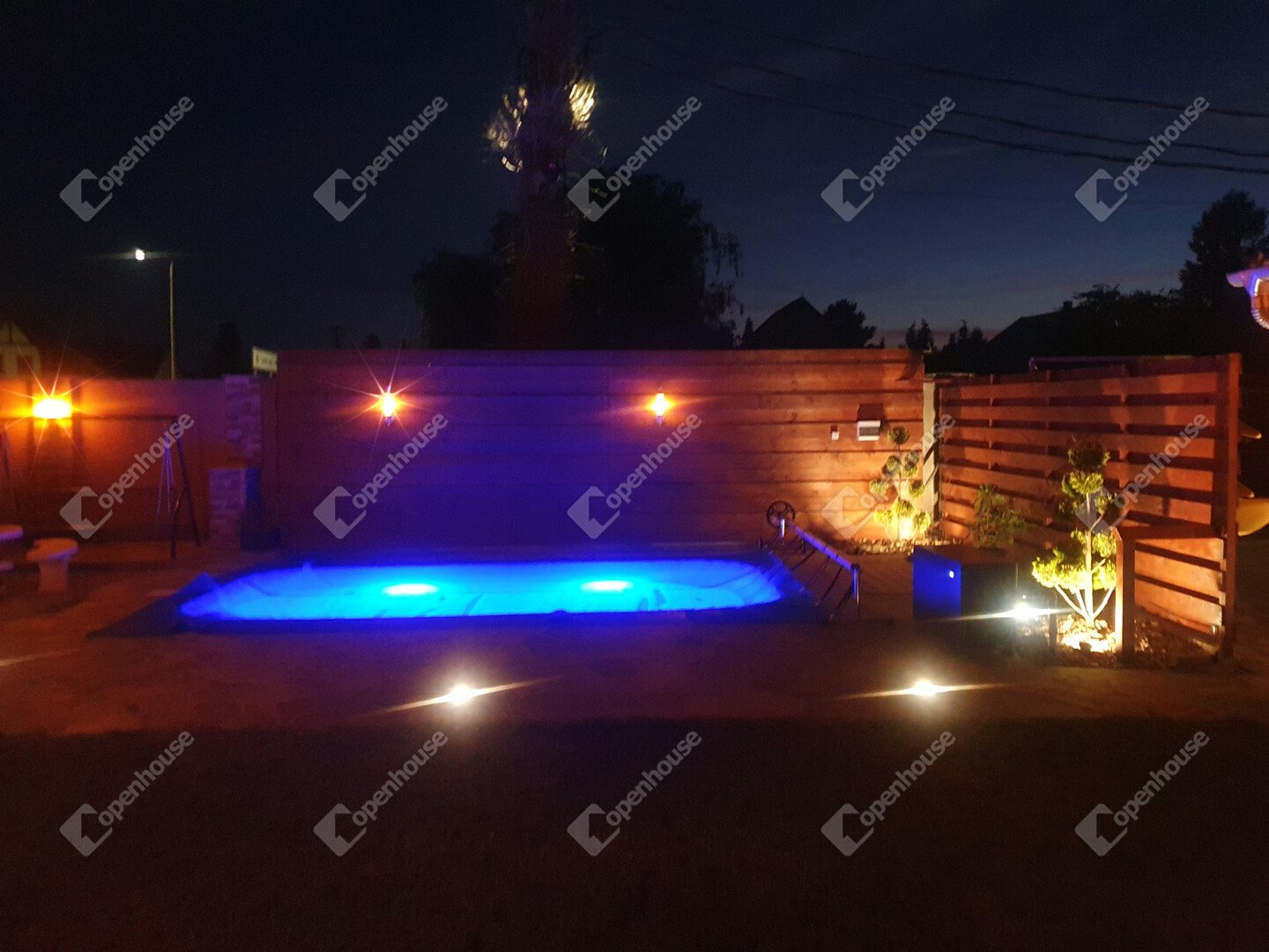 IV. wellness: party helyiség (épített kemencével biliárddal, csocsó asztallal, darts, pingpongasztal), jakuzzi rész, vendég WC, szauna