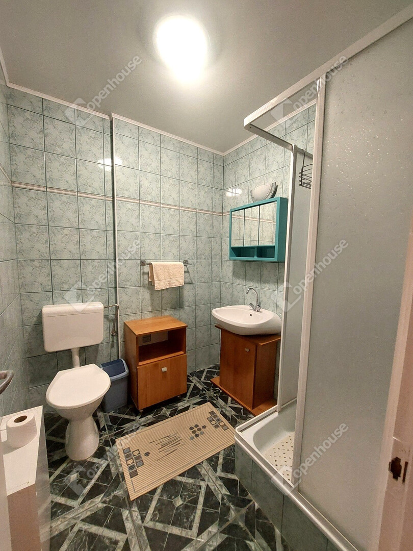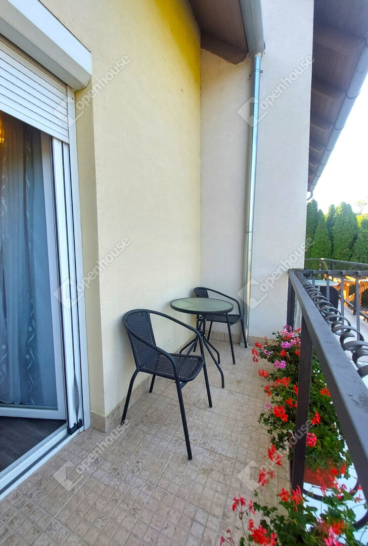 -első szinten fürdőszoba, amerikai konyhás nappali erkély kapcsolattal és gyönyörű panorámával a Balatonra