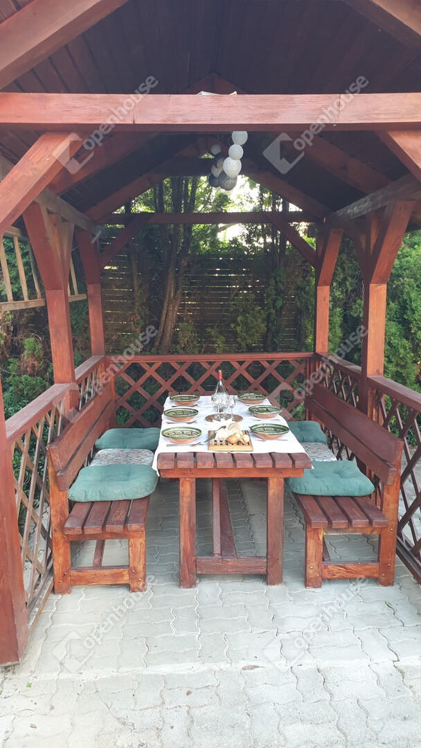 gondozott kert, szalonnasütő, bográcsozó, fedett kiülő