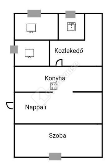 Az ingatlan felosztása: fedett terasz , nappali, konyha-étkező, kamra, fürdőszoba-wc, 2 szoba.