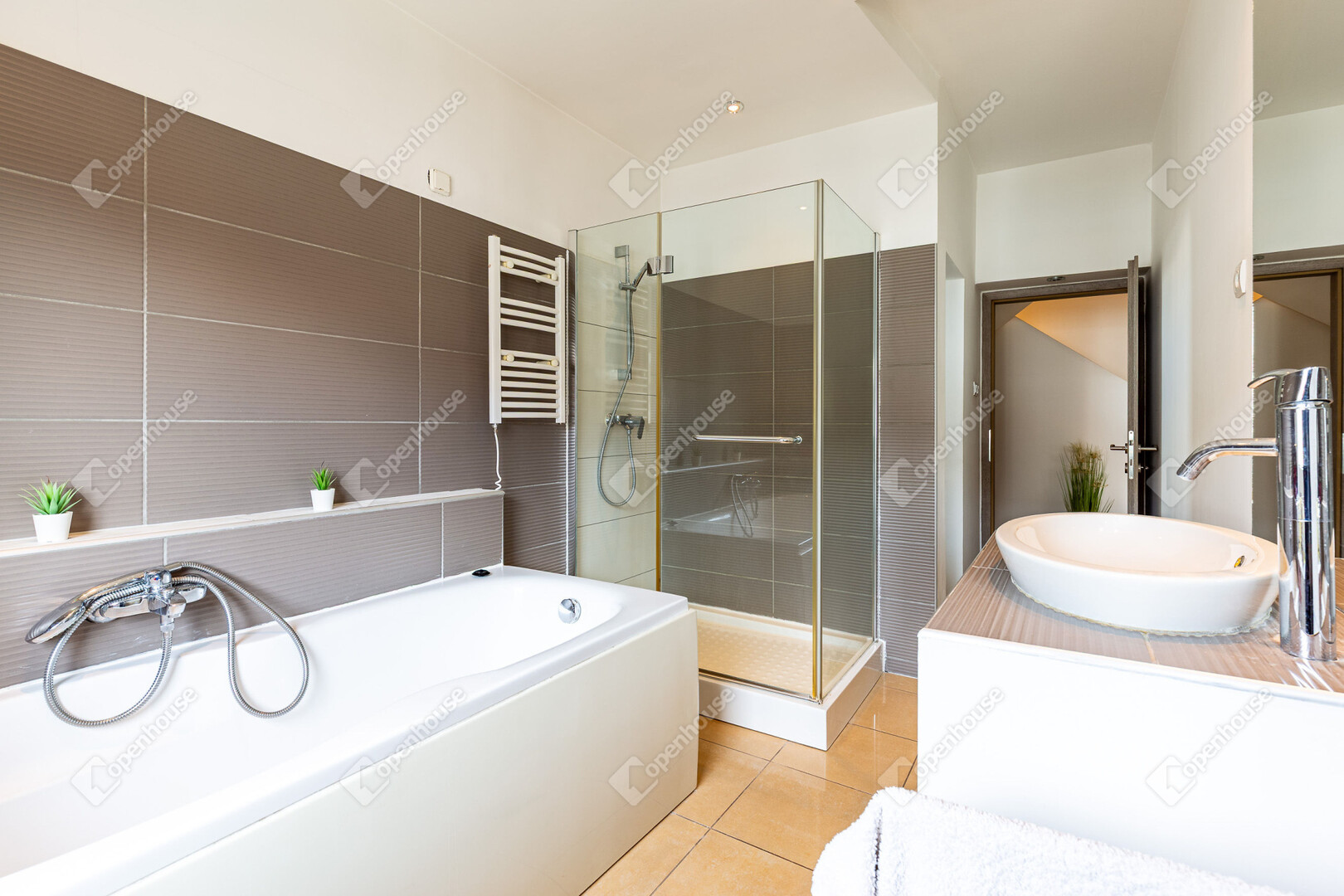 Az alsó szinten egy csodás nappali, fürdőszoba, WC, konyha-étkezővel, kamrával, emellett egy vendégszoba és egy 8 nm-es erkély található. A felső szinten egy nagy méretű tükrös tolóajtós gardrób rejti el a ruhaneműt. Ezen a szinten is van egy fürdőszoba amely tusolós valamint van WC és 2 hálószoba.