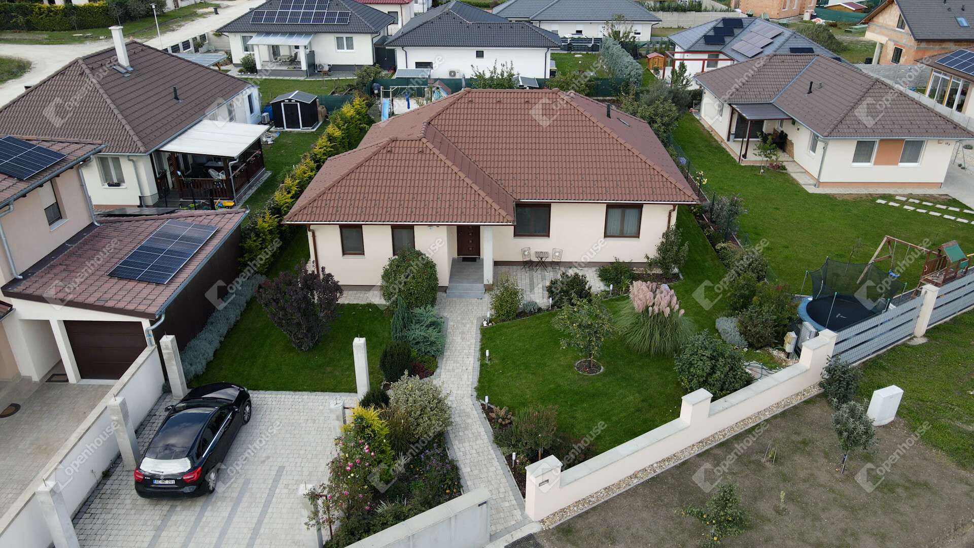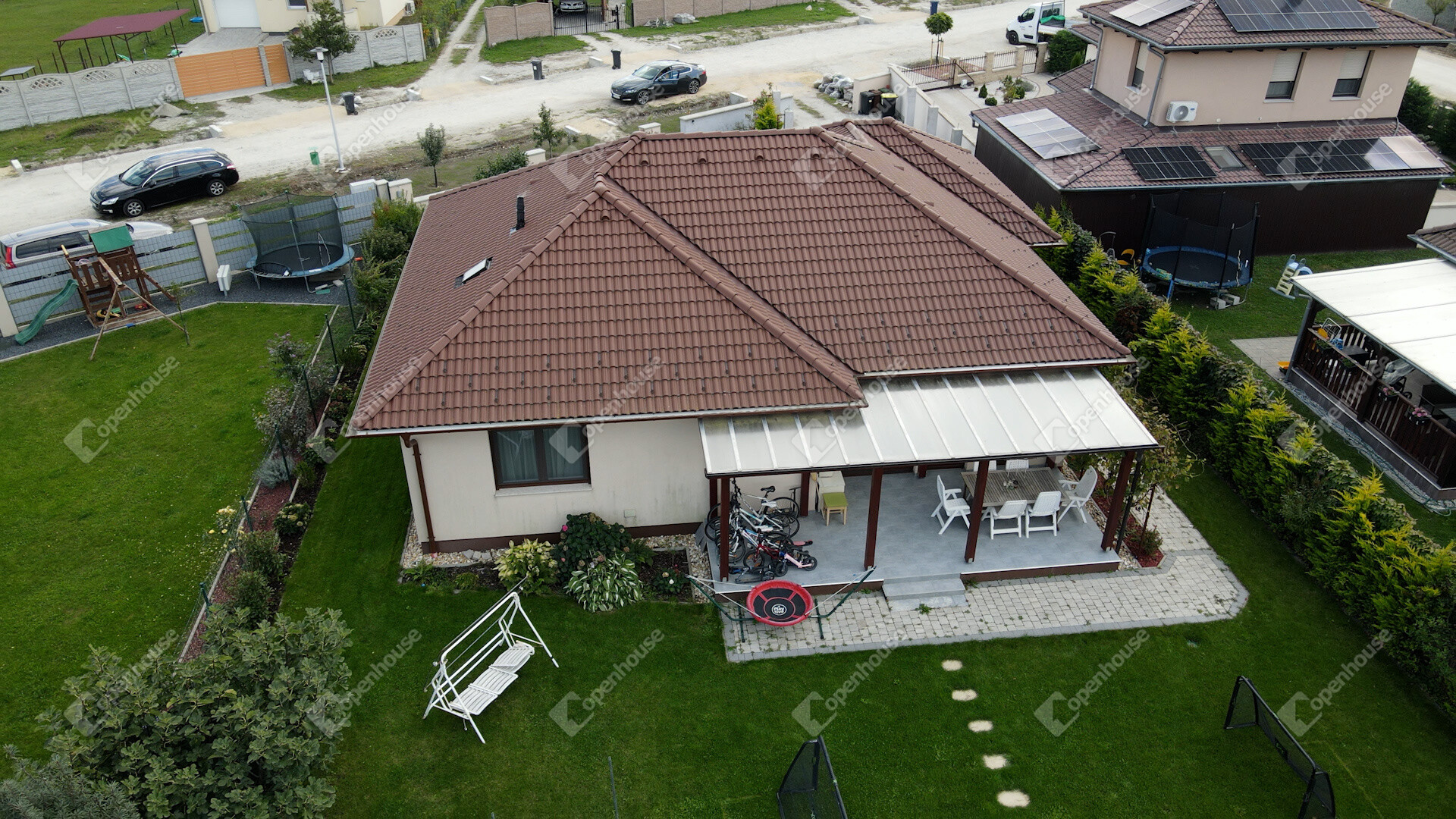 A ház műszaki tartalma korszerű: háromrétegű nyílászárók, alumínium redőnyök, mindenhol szúnyogháló, valamint gázcirkó fűtés padlófűtéssel és radiátorokkal biztosítja a kellemes hőérzetet egész évben. A gondozott kertben automata öntözőrendszer, konyhakert és kerti sütögető is helyet kapott.