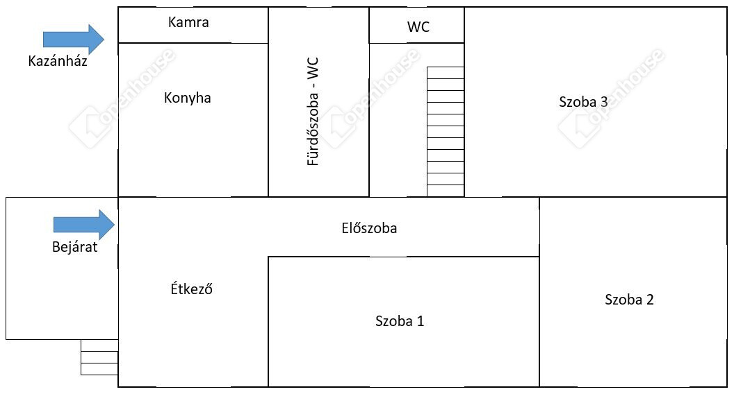 A fürdőszoba egy praktikus elrendezésű, amely a felújítás során modernizálható. A gáz (cirko) fűtési rendszer biztosítja a kényelmes hőmérsékletet a hideg téli hónapokban is.