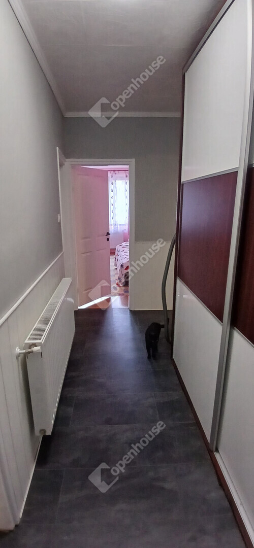 A bejárat tágas előszobába vezet, ahonnan a nappali napfényes, barátságos tere azonnal magával ragad. Innen nyílik az étkező és a stílusos, igényesen berendezett konyha, amelyet egy praktikus kamra egészít ki. A házban három külön bejáratú, kényelmes hálószoba biztosít nyugalmat, továbbá egy gondosan megtervezett fürdőszoba és egy külön WC is helyet kapott. A központi közlekedő minden helyiséget logikusan összeköt, így az otthon áramló, tágas hatást kelt. A házhoz tartozik egy kazánház, ahol a gázkazán és a vegyes tüzelésű kazán is megtalálható, a meleg vizet pedig gáz- és villanybojler szolgáltatja. Valamint egy garázs, amely közvetlenül az épületből is megközelíthető. És még ezen felül egy nyitott kocsibálló a ház utolsó eleme.
