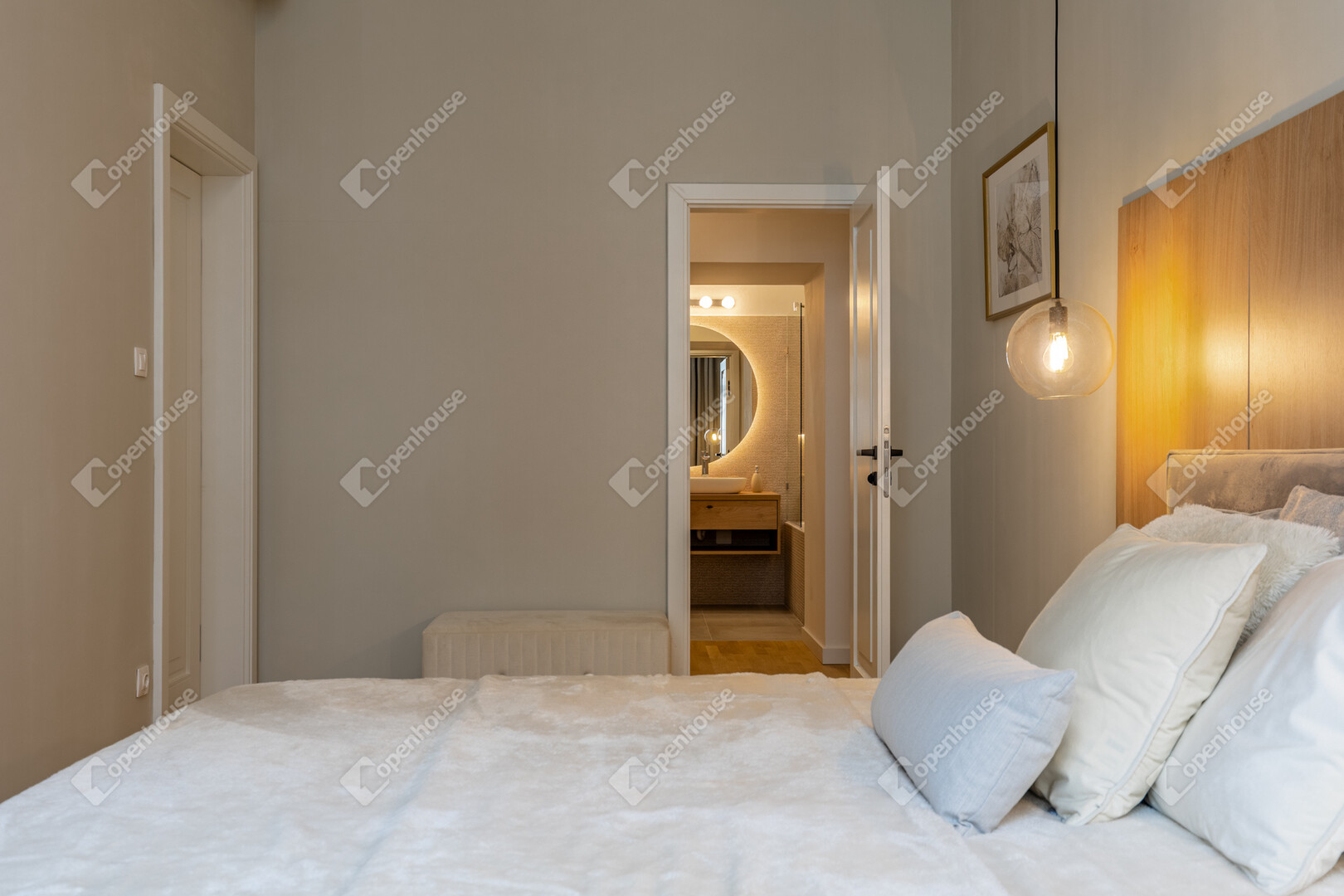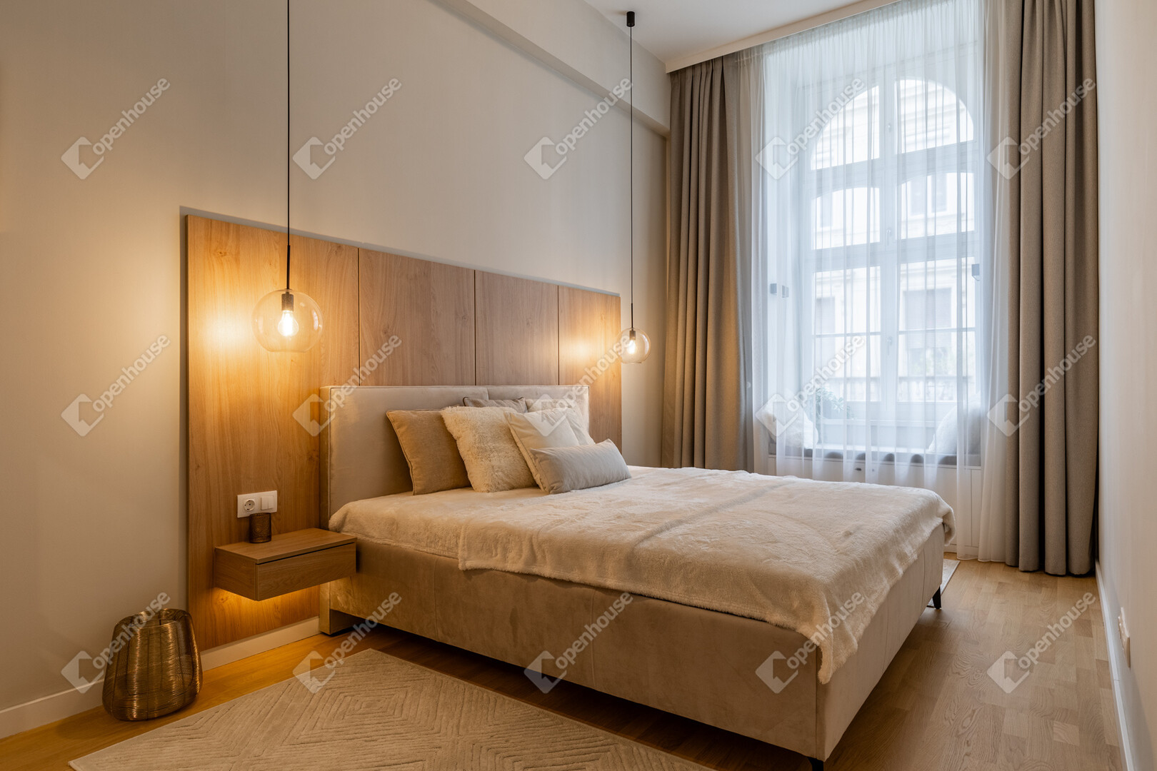 A lakás teljes felújítása során a polgári szerkezet nagyvonalú arányait ötvözték a modern otthonok kényelmével és kifinomult esztétikájával. A nappali világos, tágas tér, amelyet a nagyméretű ablakokon át beáradó fény és a visszafogott színek harmóniája tesz különlegessé. A konyha elegáns fekete és natúr fa kombinációban készült, beépített gépekkel és rejtett világítással, amely egyszerre esztétikus és funkcionális. A három különnyíló hálószoba neutrális tónusokkal és természetes fa padlóval biztosít nyugodt, kiegyensúlyozott atmoszférát. A két fürdőszoba olasz burkolatokkal, modern szaniterekkel és LED-világítással készült – egyik káddal, másik walk-in zuhannyal, a legmagasabb komfortérzetet kínálva.