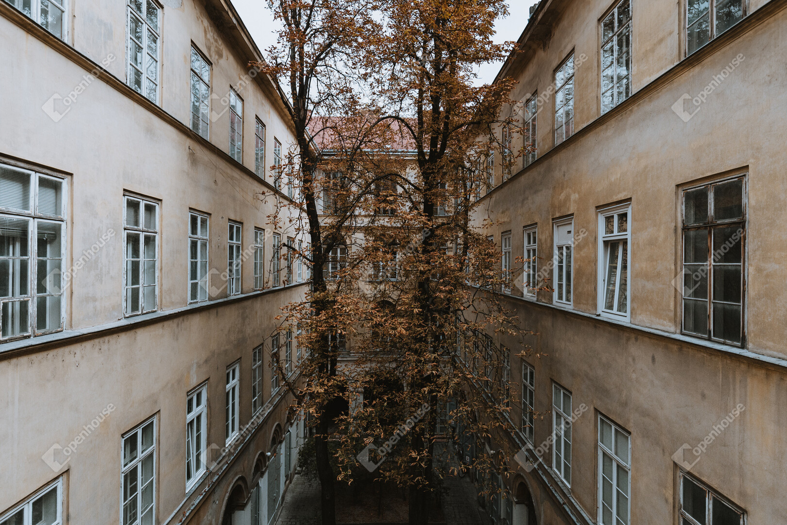 The façade radiates dignity, the spacious inner courtyard creates a pleasant, intimate atmosphere, and the staircase retains original architectural details from the era.
