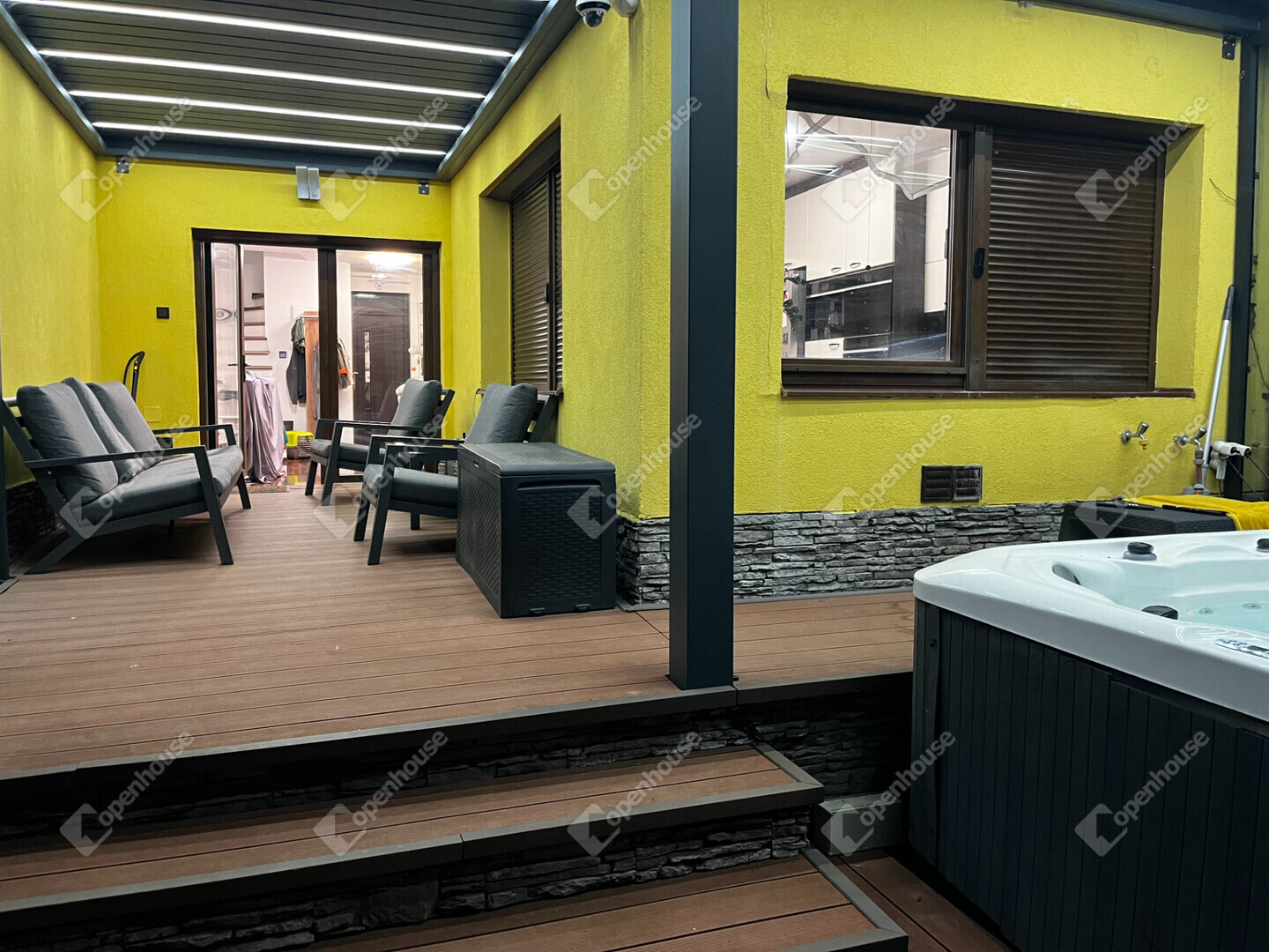 - A földszinten a nappaliból közvetlen kijárat van a teraszra. Itt található egy pihenőkert jakuzzival és egy 36 nm-es garázs.