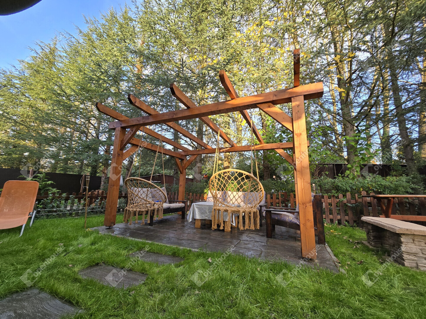 Rendezett, parkosított kert kiülővel és kerti sütögetővel