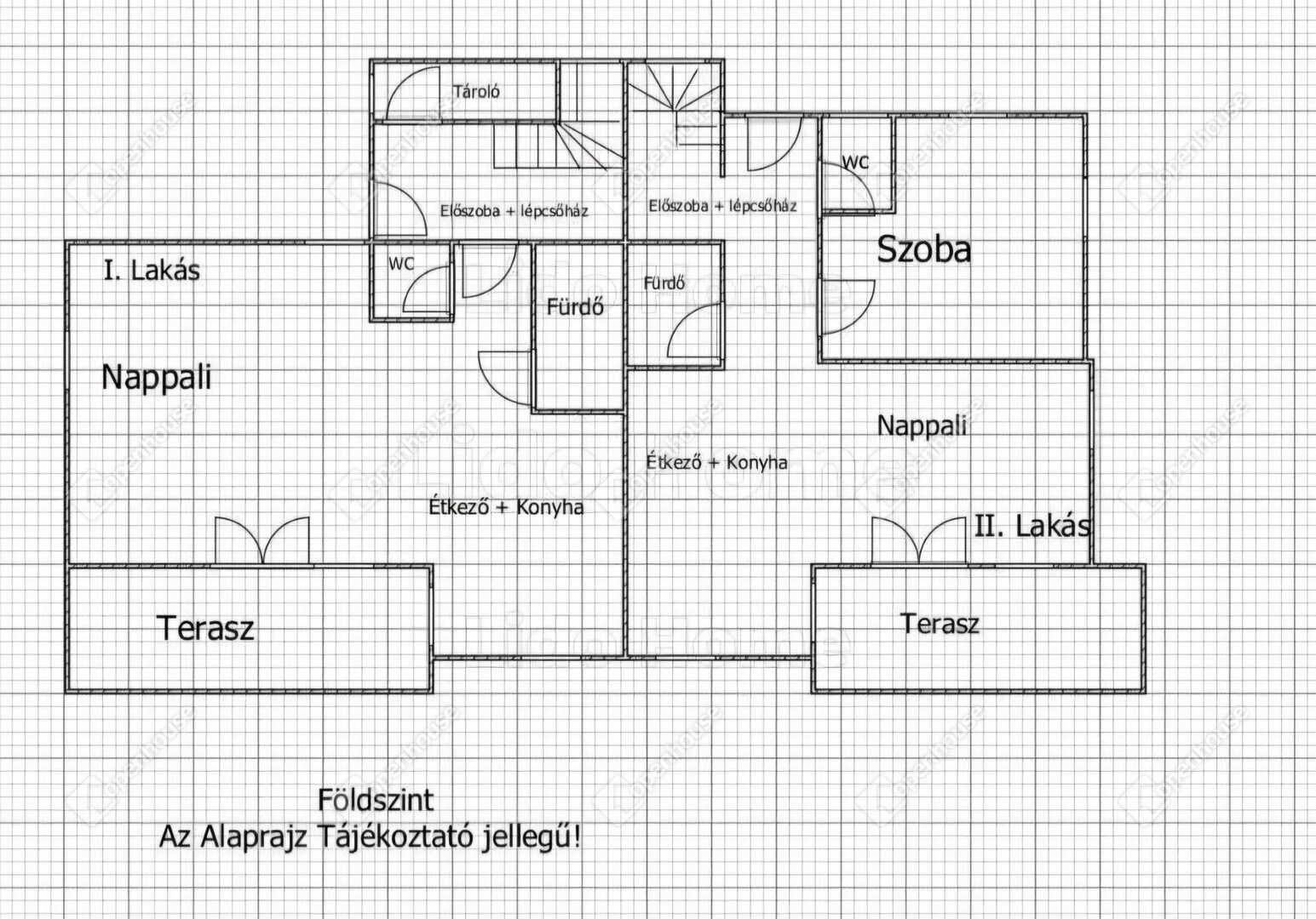 Mind a négy lakás külön helyrajzi számmal rendelkezik, az összevonás pedig könnyedén visszaállítható