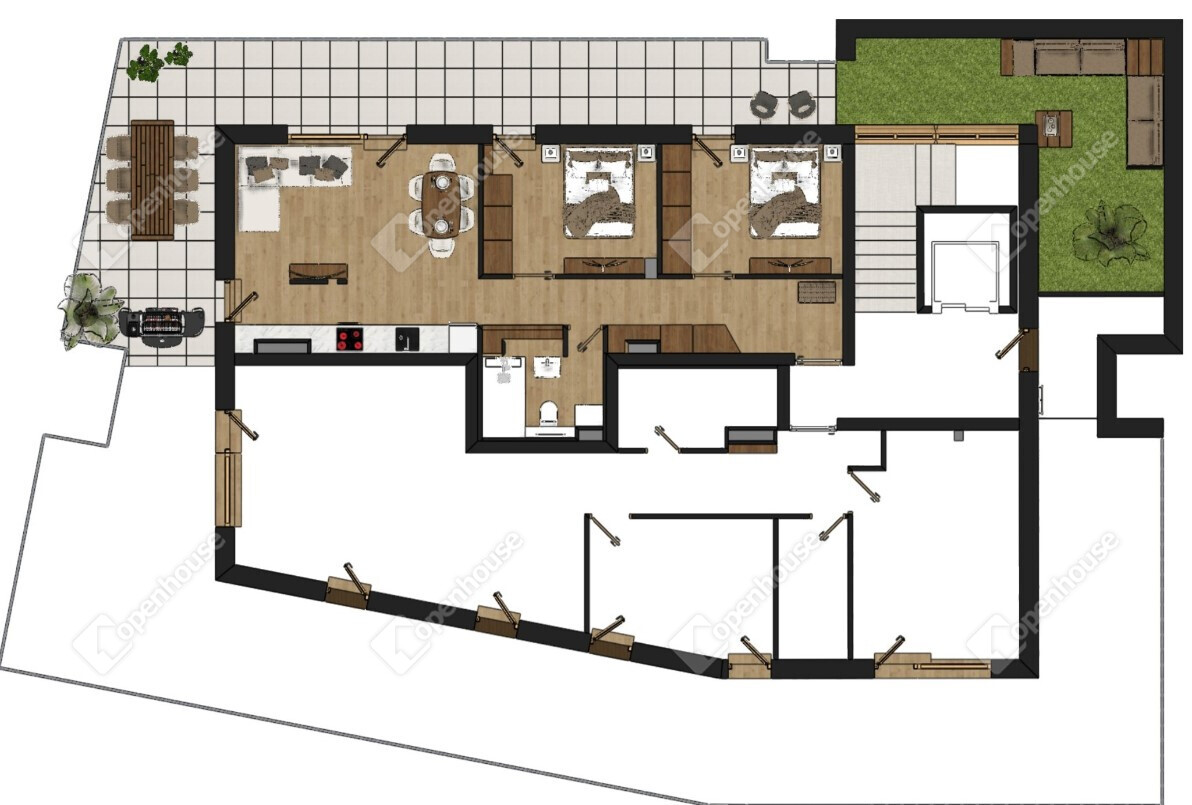 - Ezen a szinten csak 2 lakás található.