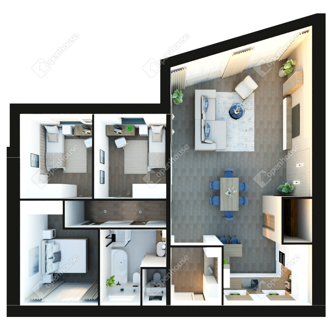 - Amerikai konyhás nappali + 3 szoba – tágas, világos élettér!