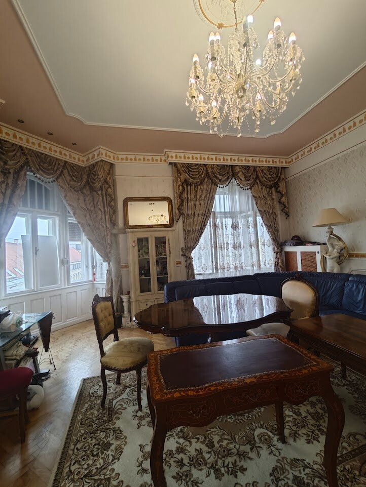 Igazán egyedi díszítésű, nagy belmagassággal rendelkező társasházi lakás keresi új tulajdonosát.