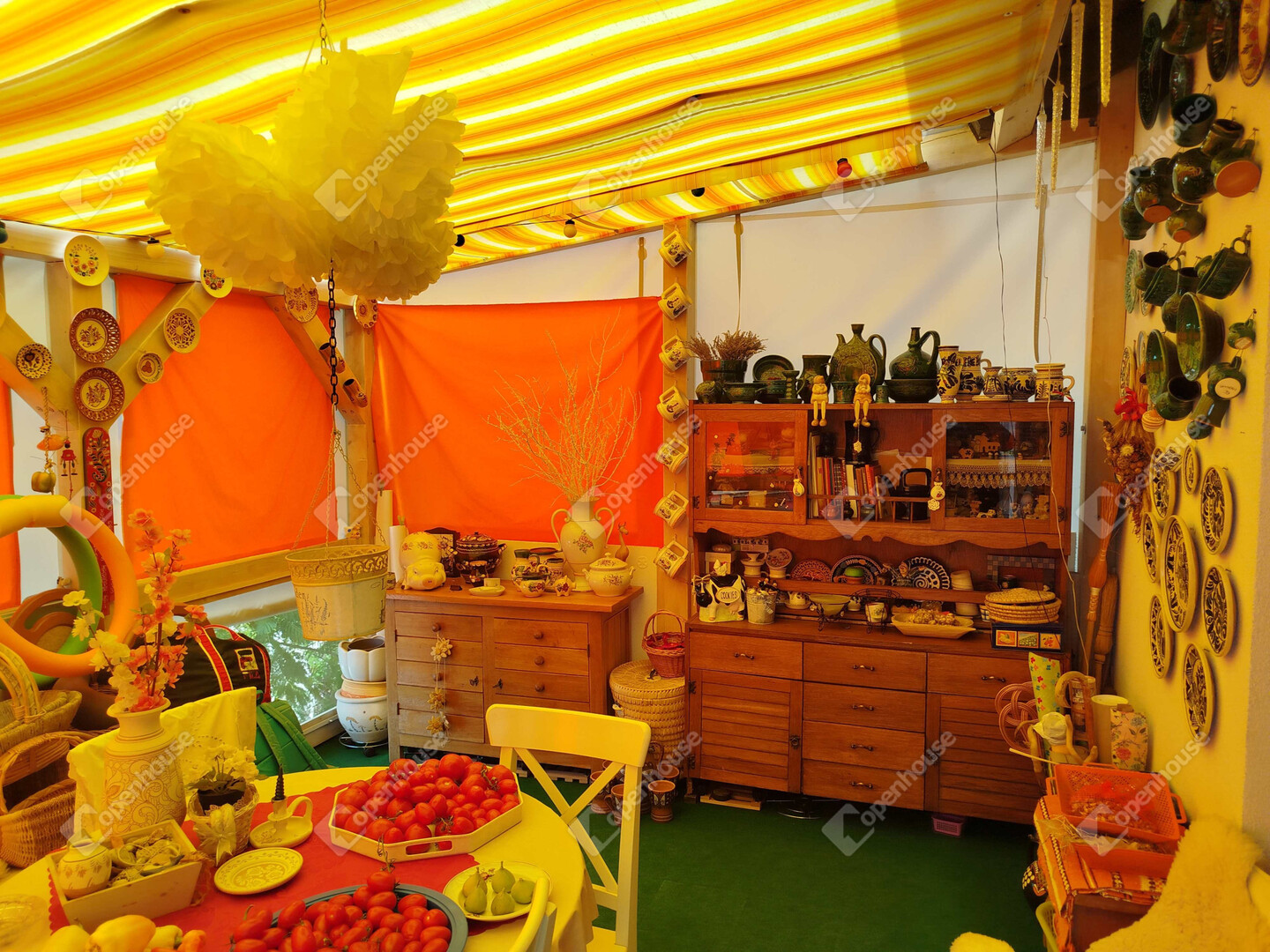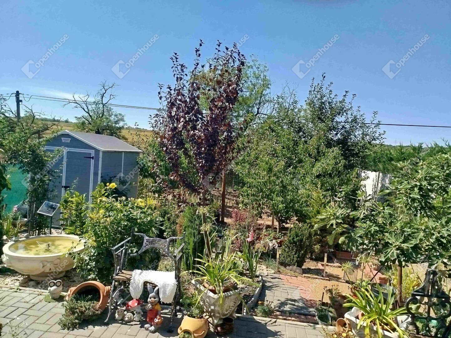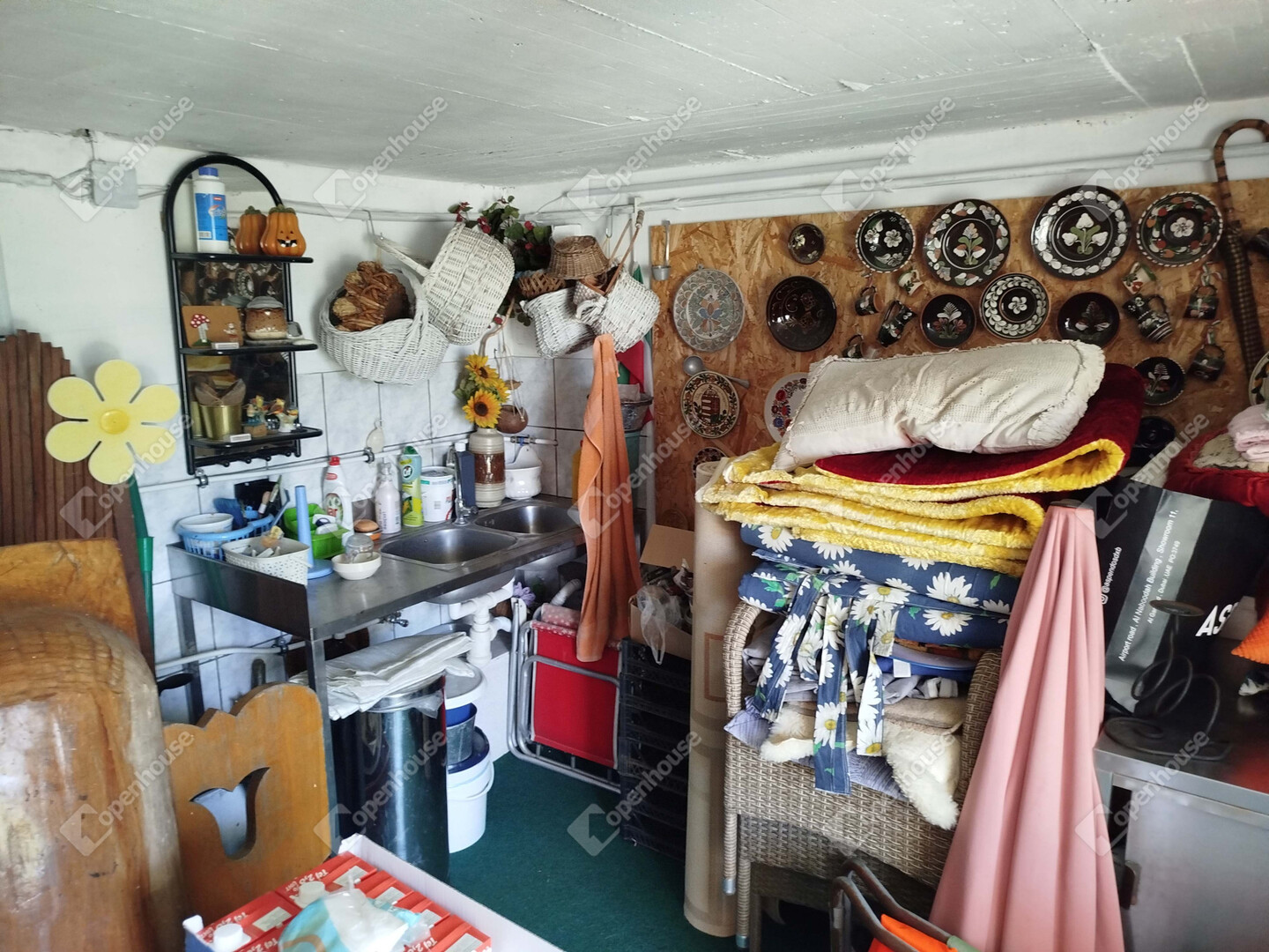 A 94 m2 közvetlen lakótérhez tartozik egy nappaliból nyíló 18 m2-es terasz, ahol a nyári estéket kellemesen töltheti el a friss levegőn. A teraszról lépcsősor vezet le a kertbe, ahol egy kényelmes könnyű előtető alatt a pihenéstől a bográcsozásig bármilyen szabadidős tevékenység választható. Az előtető mellett - a terasz alatt zárható ajtóval egy szintén 18 m2-es pincerész van, amely a tárolástól kezdve akár a kerti konyha szerepét is betöltheti, lévén vízcsap, mosogatótálca és lefolyó itt is található.