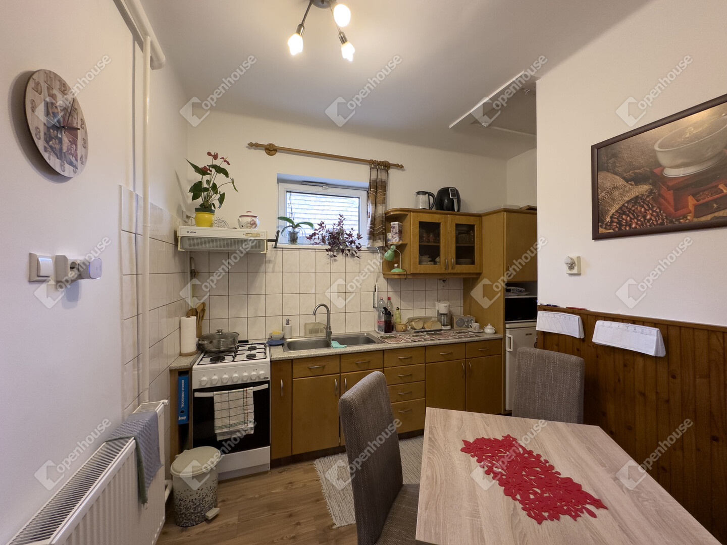 A tető új, a fűtés gáz-cirkó rendszerű, de az ingatlan rendelkezik egy vegyes tüzelésű kazánnal is, amely kisebb munkával ismét üzembe helyezhető.