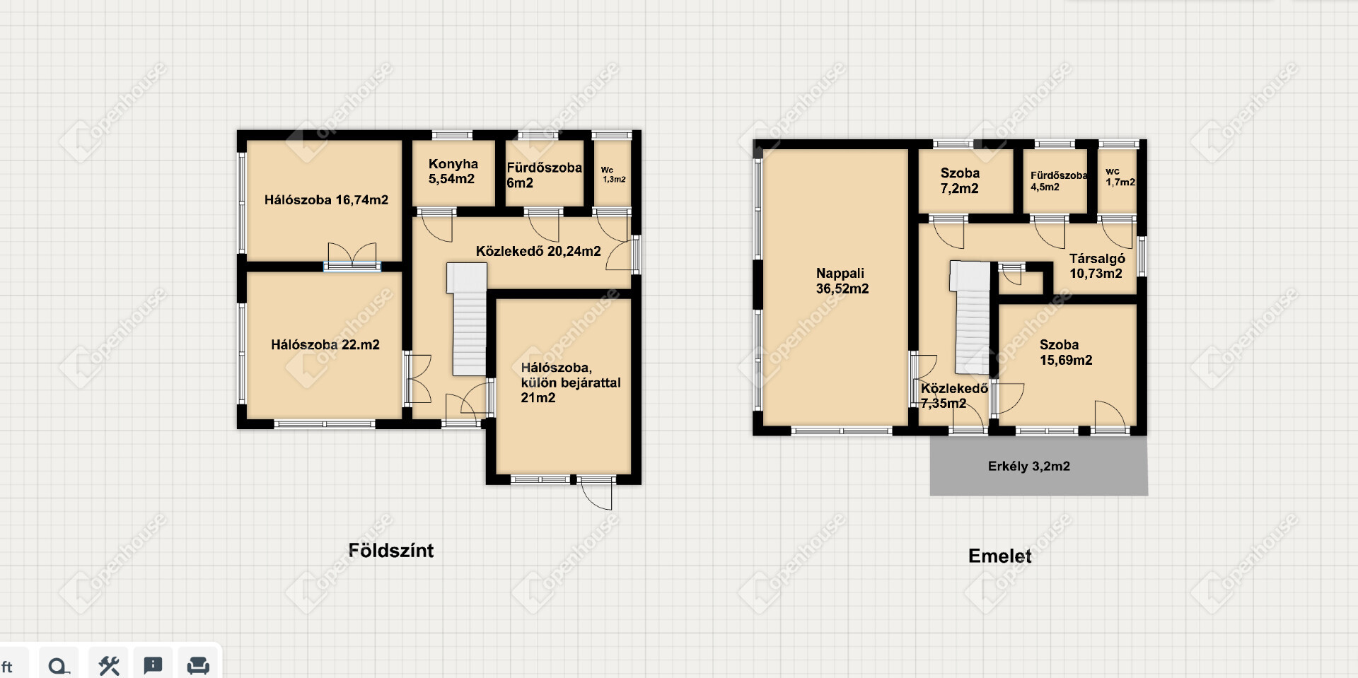 | Lépcsőház | 5.00 m2 | Laminált padló |