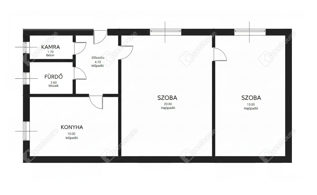 | Szoba | 20.00 m2 | Hajópadló |