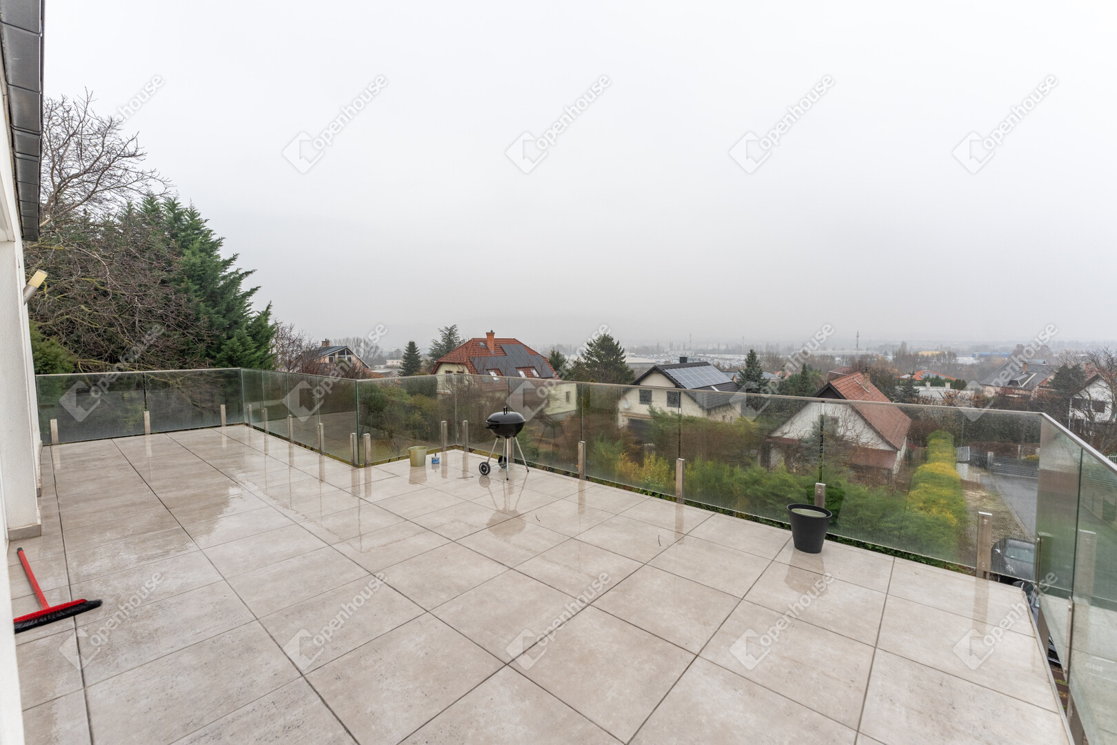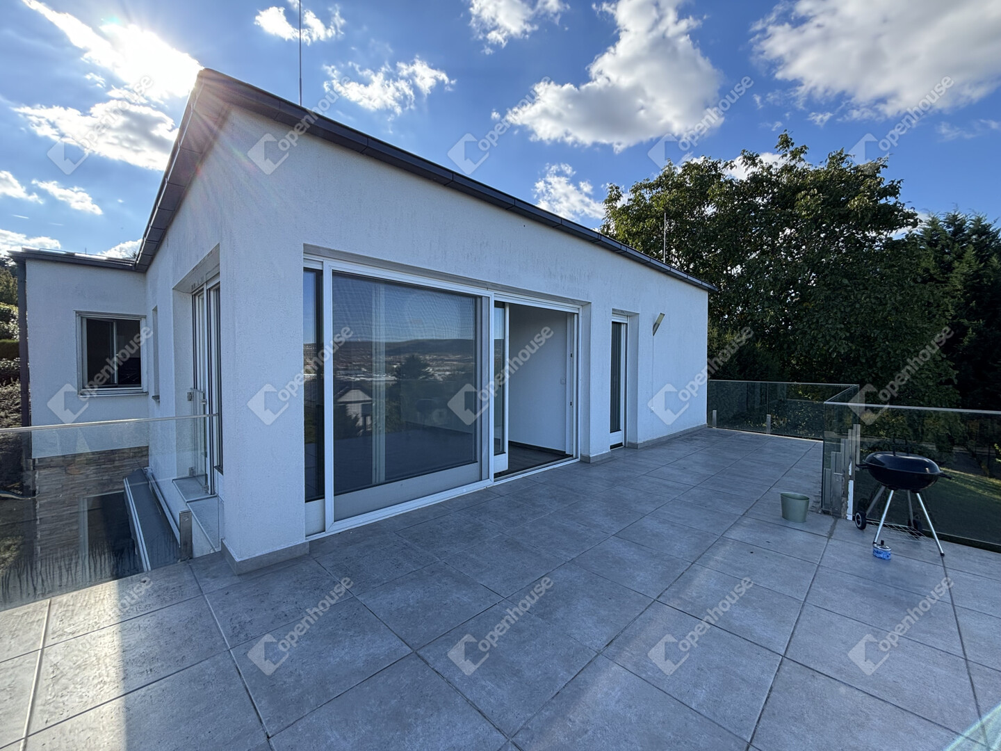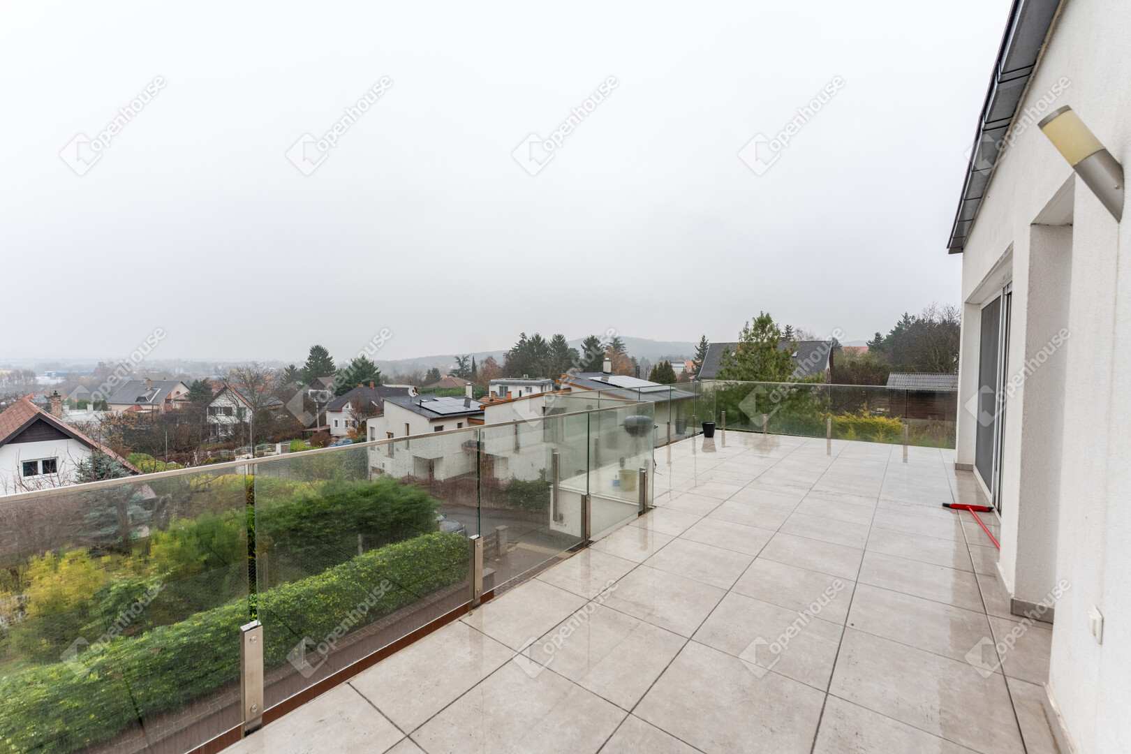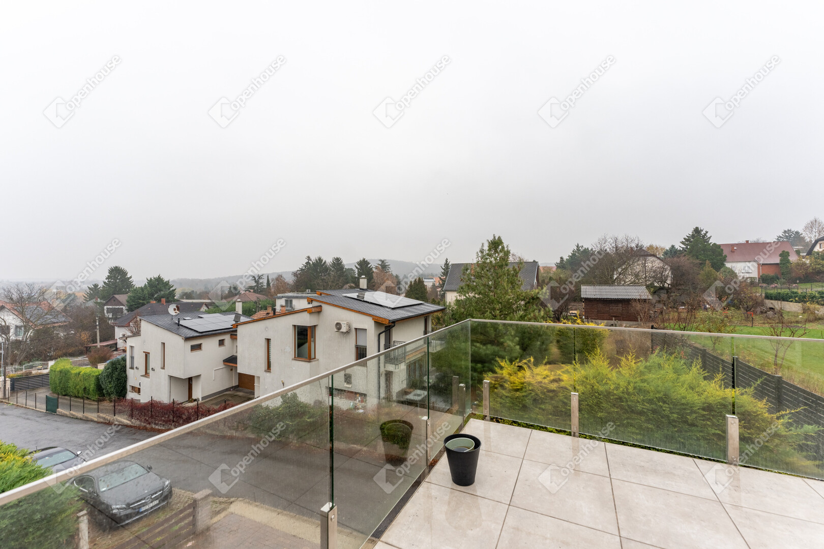 A ház elhelyezkedéséből adódóan 180 fokos, körpanorámás kilátás tárul elénk, amely a nappaliból, a teraszról és a kertből is élvezhető.