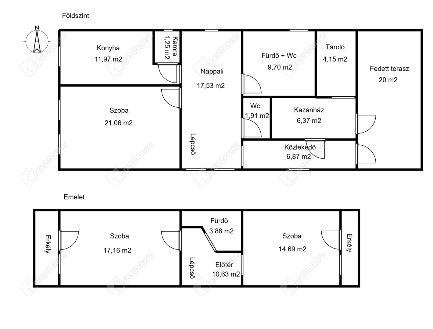 - emeleten: 2 tágas szoba, 2 erkély, előtér, fürdőszoba helyiségekkel rendelkező, folyamatosan karbantartott családi ház.