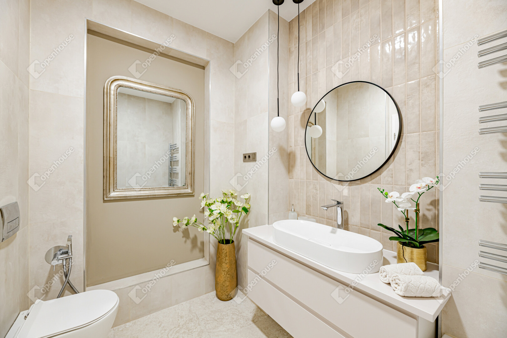 A fürdőszobák időtlen árnyalatai, matt felületei és minőségi szerelvényei a modern esztétika és a funkcionalitás tökéletes egyensúlyát tükrözik.