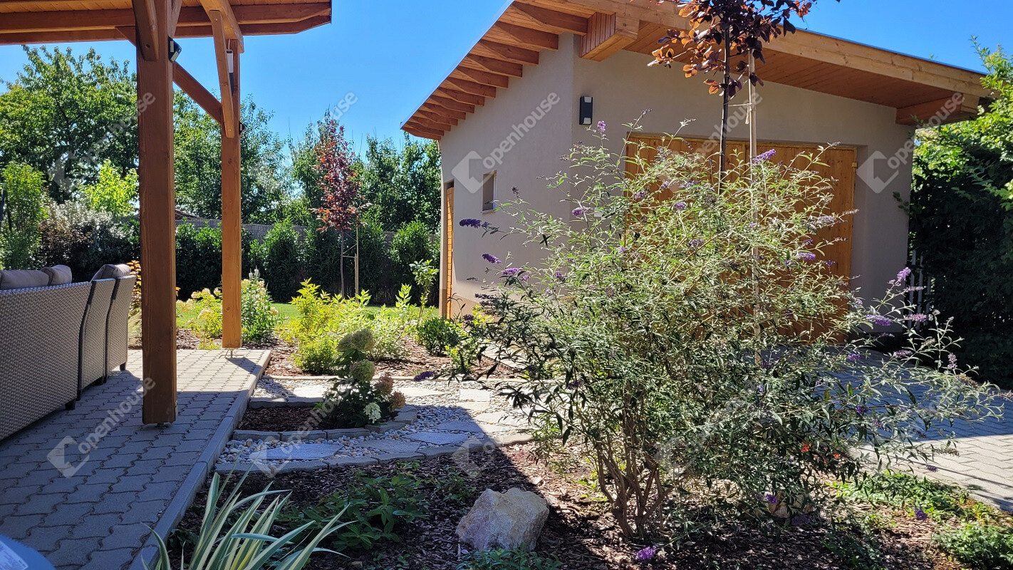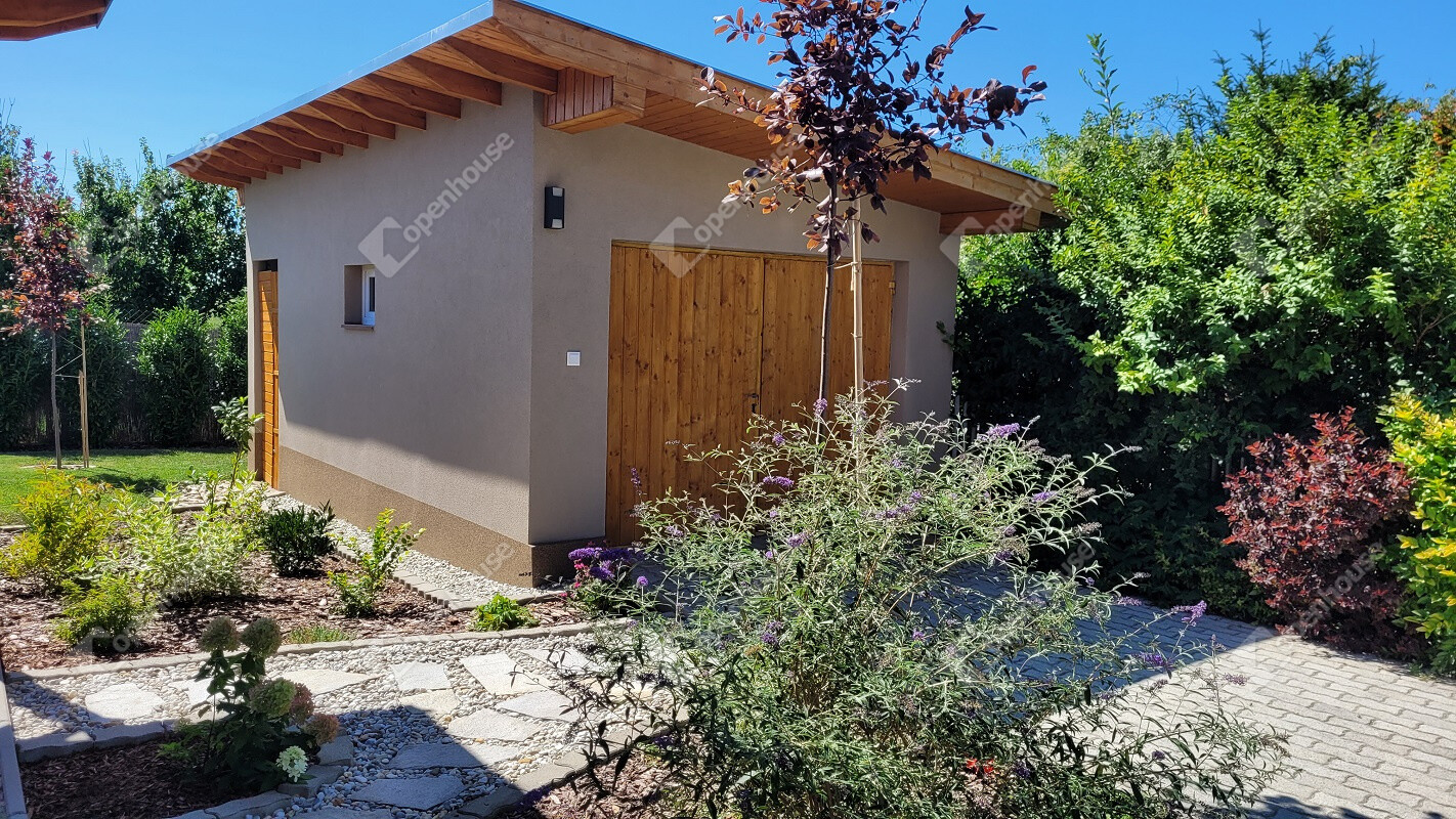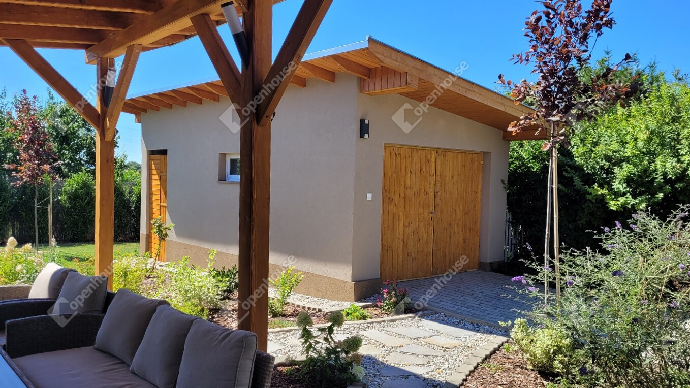 A házhoz egy 600 m2-es kert tartozik -díszkővel burkolt felszíni parkoló, több autó számára -melléképületben garázs, a kertkapu elektromos.
