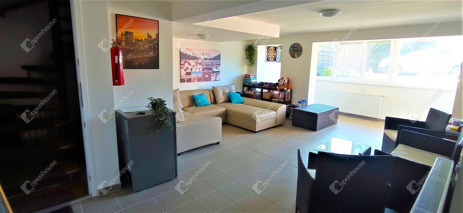 A 208 m2-es ház a berendezés nagy részével együtt eladó.