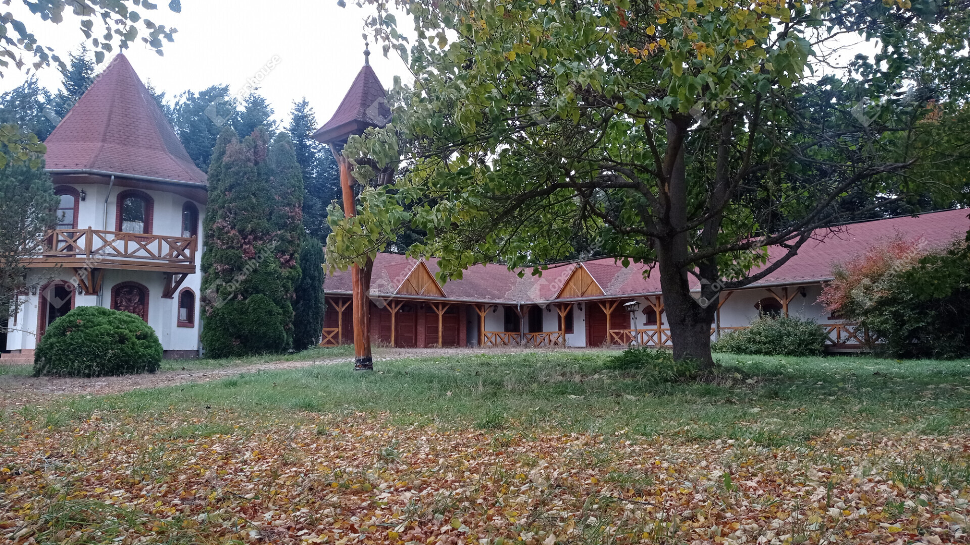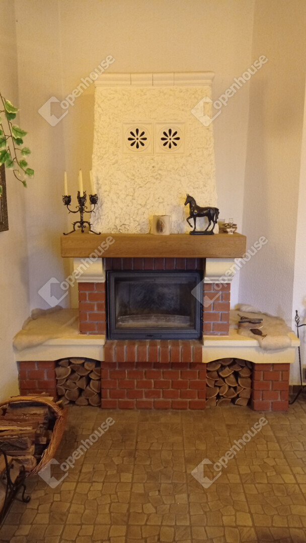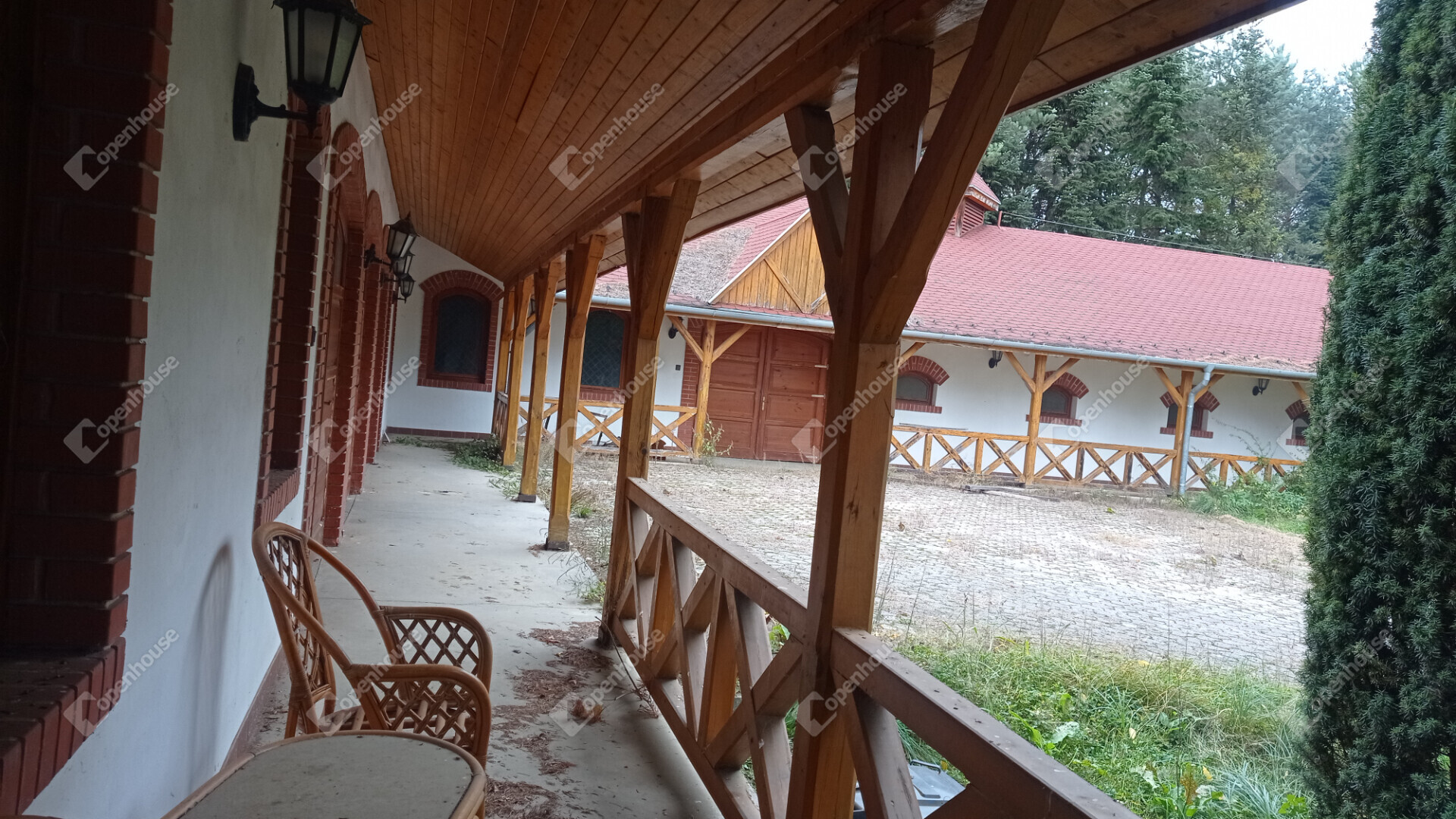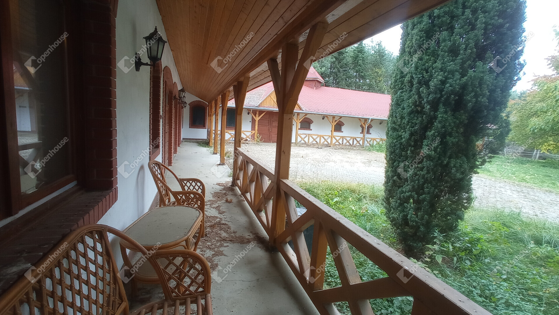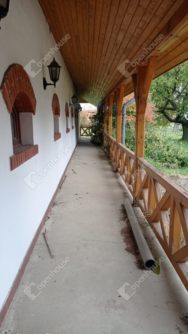 A főépület egy kétszintes, ízlésesen berendezett azonnal költözhető, teljesen felszerelt lakóház bárpultos fogadószobával, nappalival, konyhával, fürdővel emeleti részen fantasztikus hangulatú szobával amihez félkörívben fából épített erkélyéről csodásan elénk tárul az egész birtok.