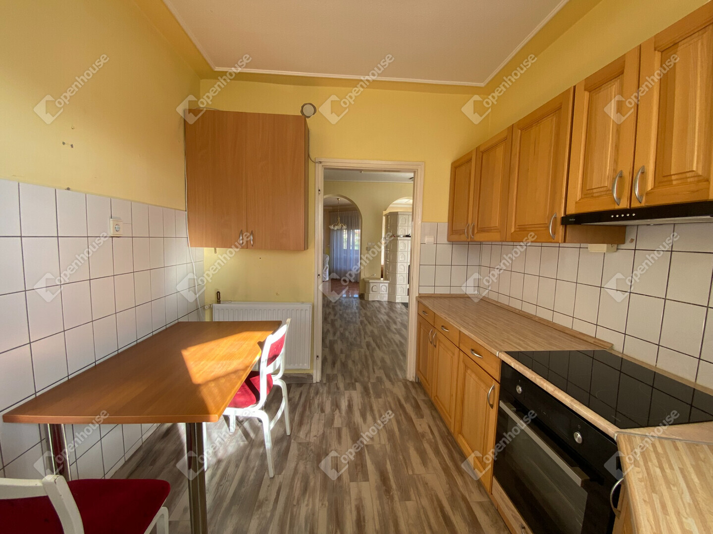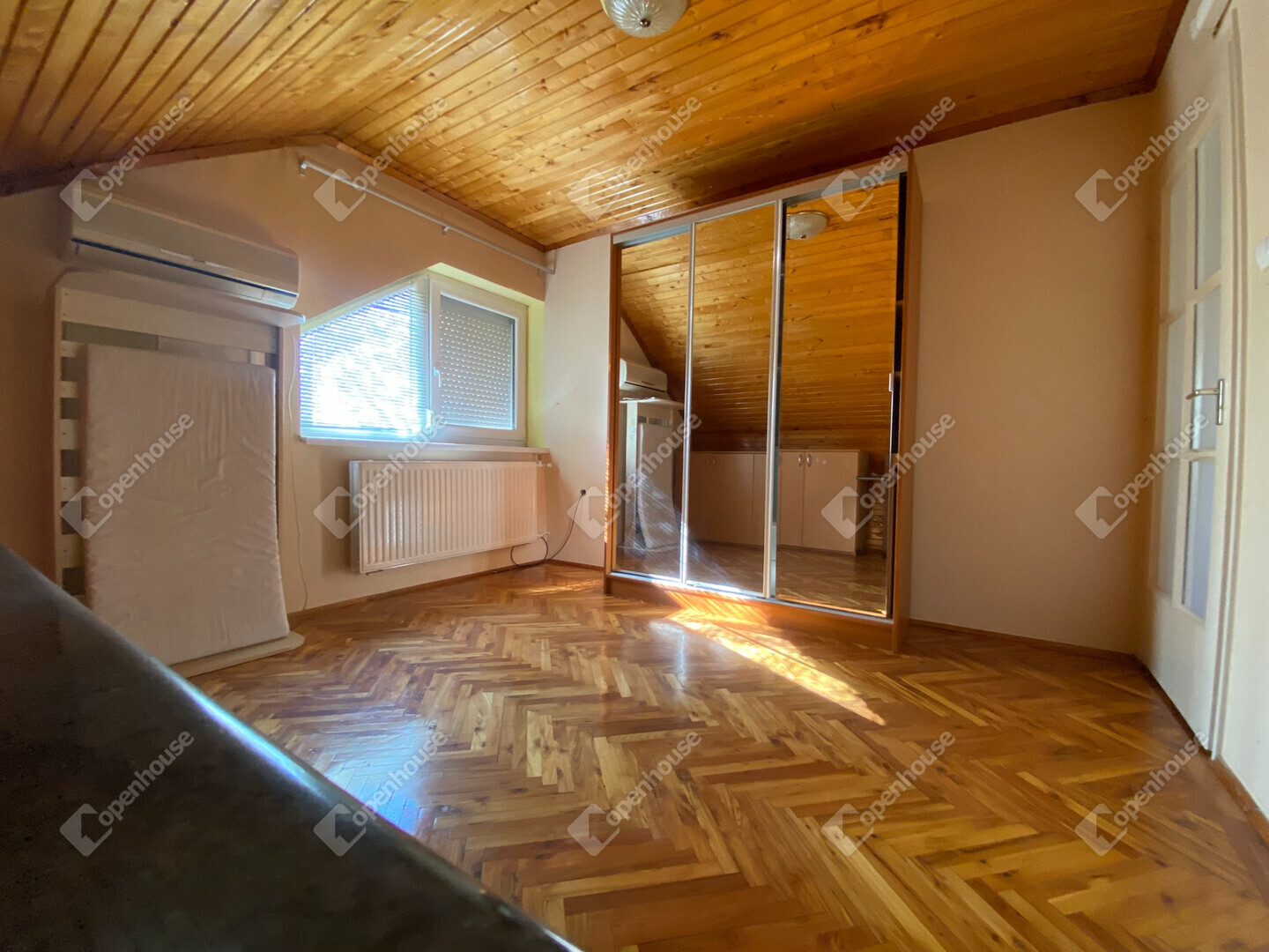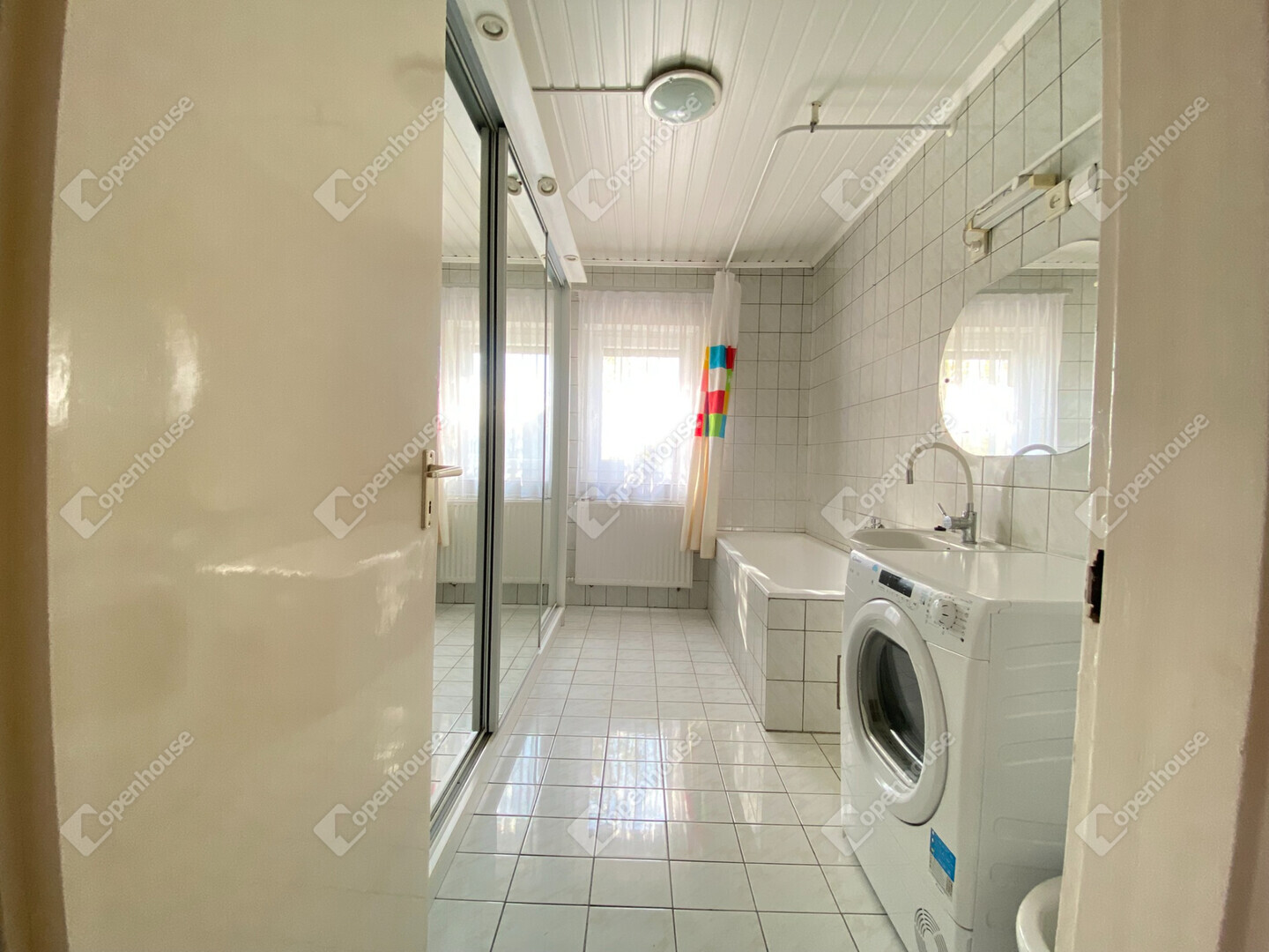 - A szobákban, a nappaliban faparketta, az étkezőben, az előtérben, a konyhában laminált parketta található, a fürdőszobákban járólap.