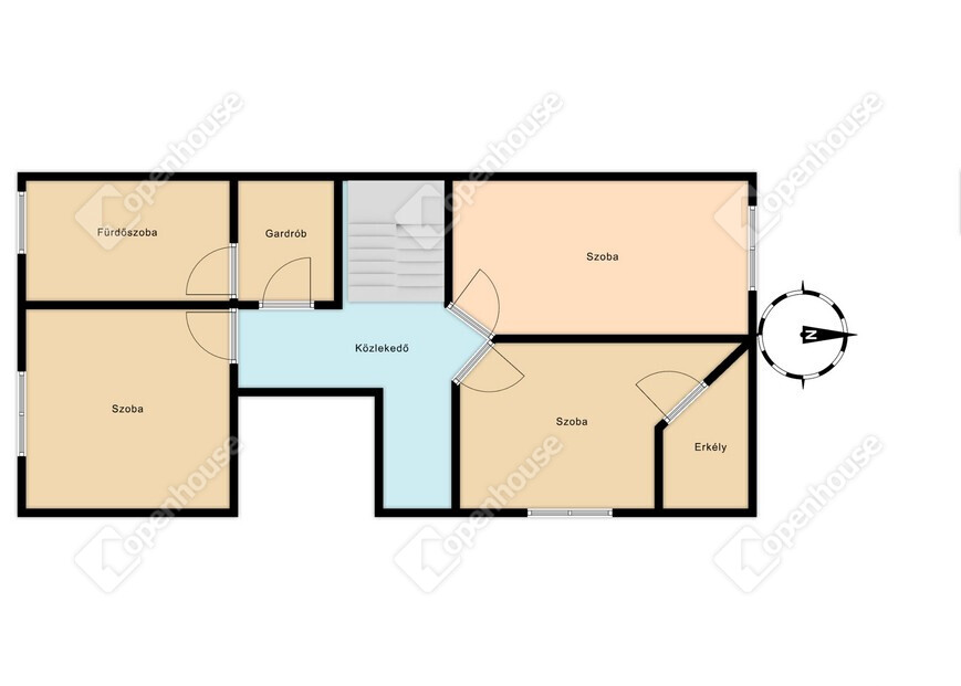 - Az emeleten 3 szoba, valamint egy fürdőszoba WC-vel került kialakításra.