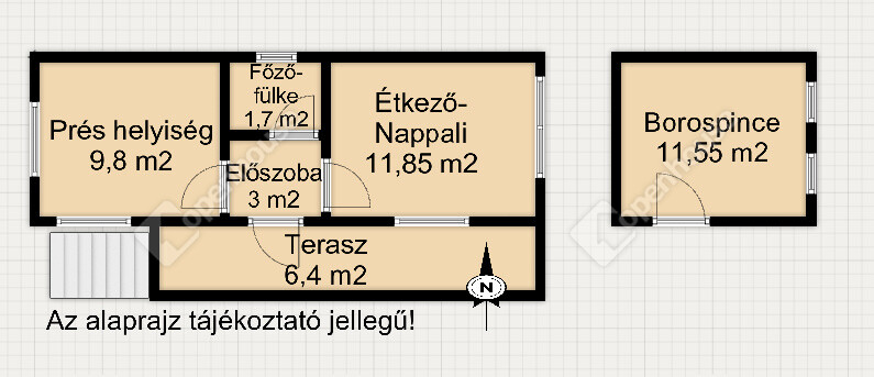 Jellemzői: - 4 helyiségből áll: konyha, nappali-étkező, présház, alatta borospince és tároló