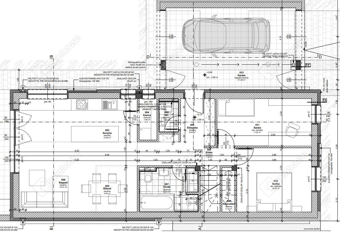- A házhoz tartozik egy 27 nm - es elektromos kapuval felszerelt garázs.