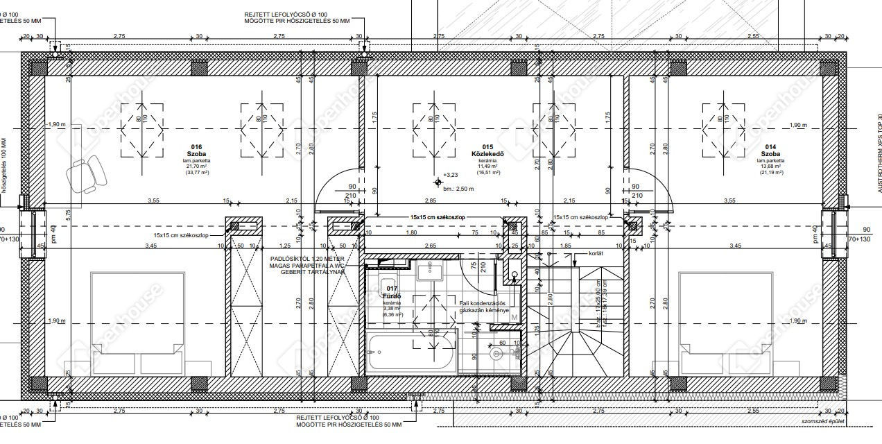 - Az ház tetőteres kialakítású, láncház jelleggel épült.