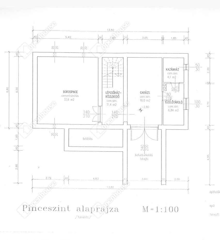 - Pince szint: társalgó szoba, garázs, kazánház, pakoló helyiség.
