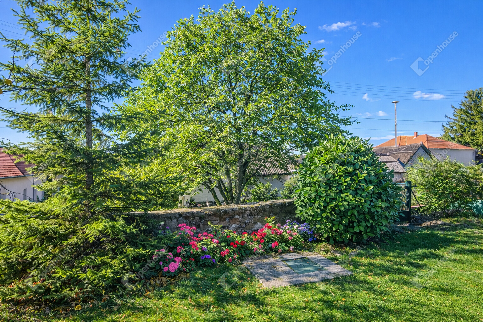 A 1 010 m²-es telek gondozott, füvesített, gyümölcsfákkal dús.
