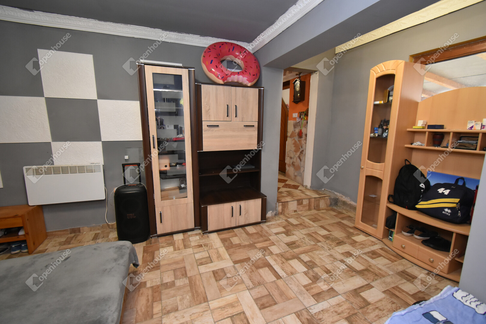- Fűtése a két utca fronti szoba közti cserépkályhával és elektromos fűtő panelekkel történik.