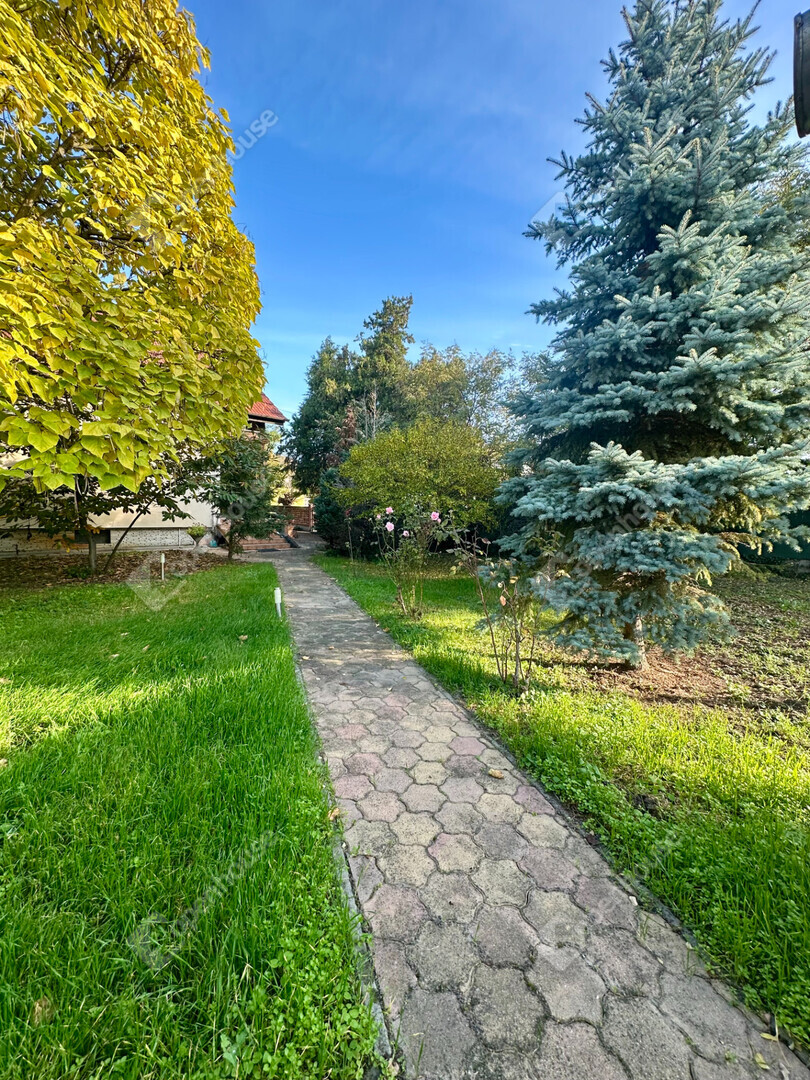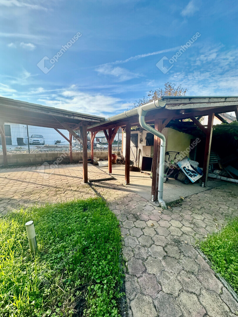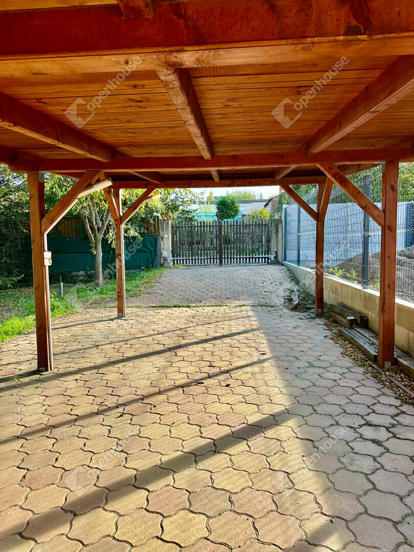 A házat körülölelő gondozott kert hangulatot teremt a pihenéshez nagy árnyas fák, ápolt pázsit és fedett kocsibeálló elektromos kapuval, valamint külön kerti tároló is része a telken található épületegyüttesnek.