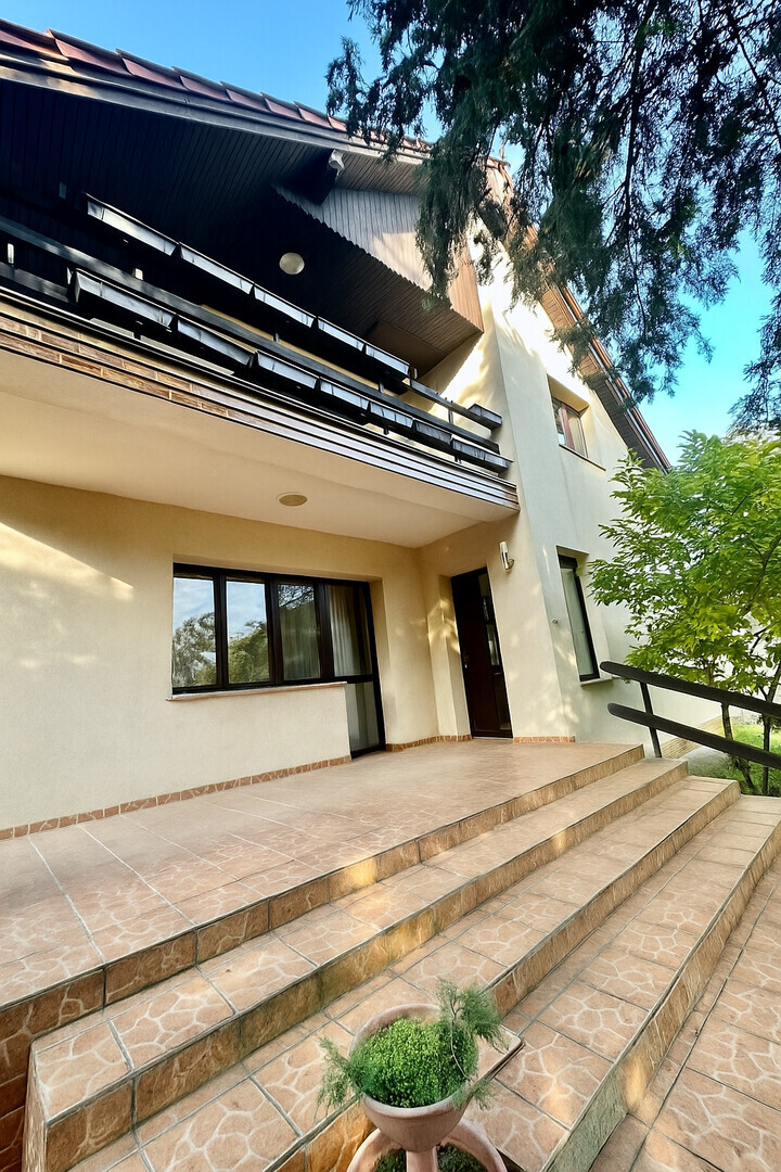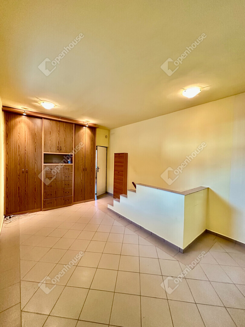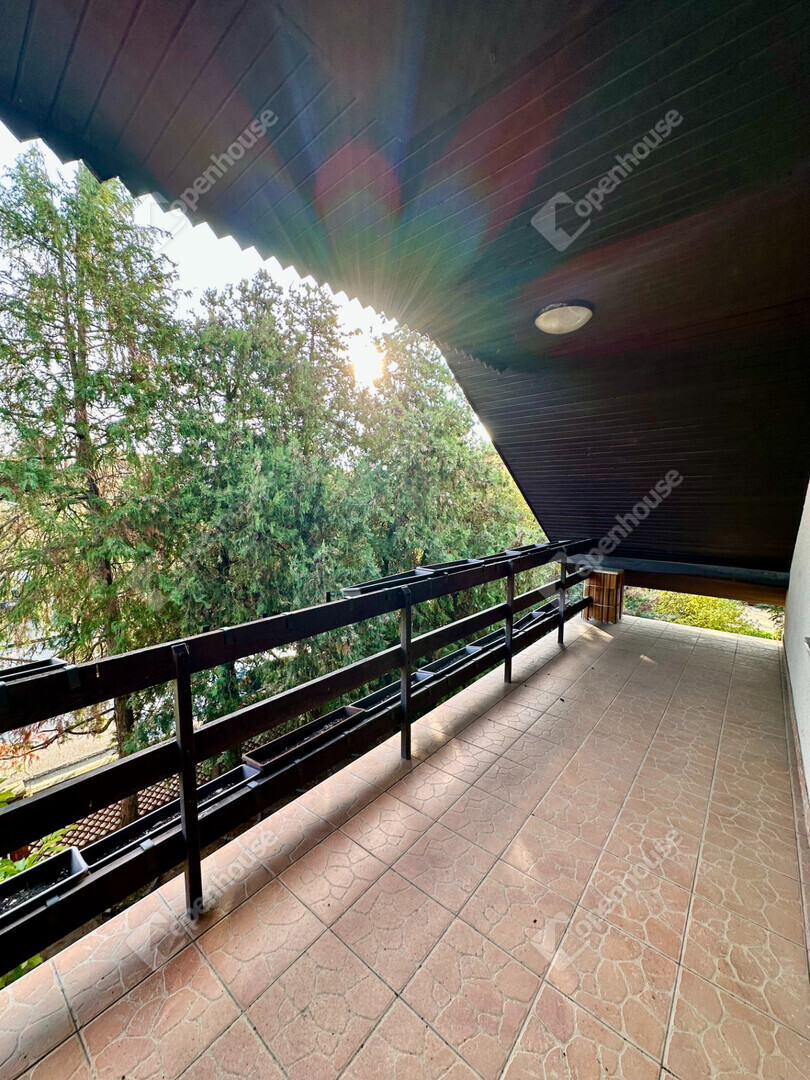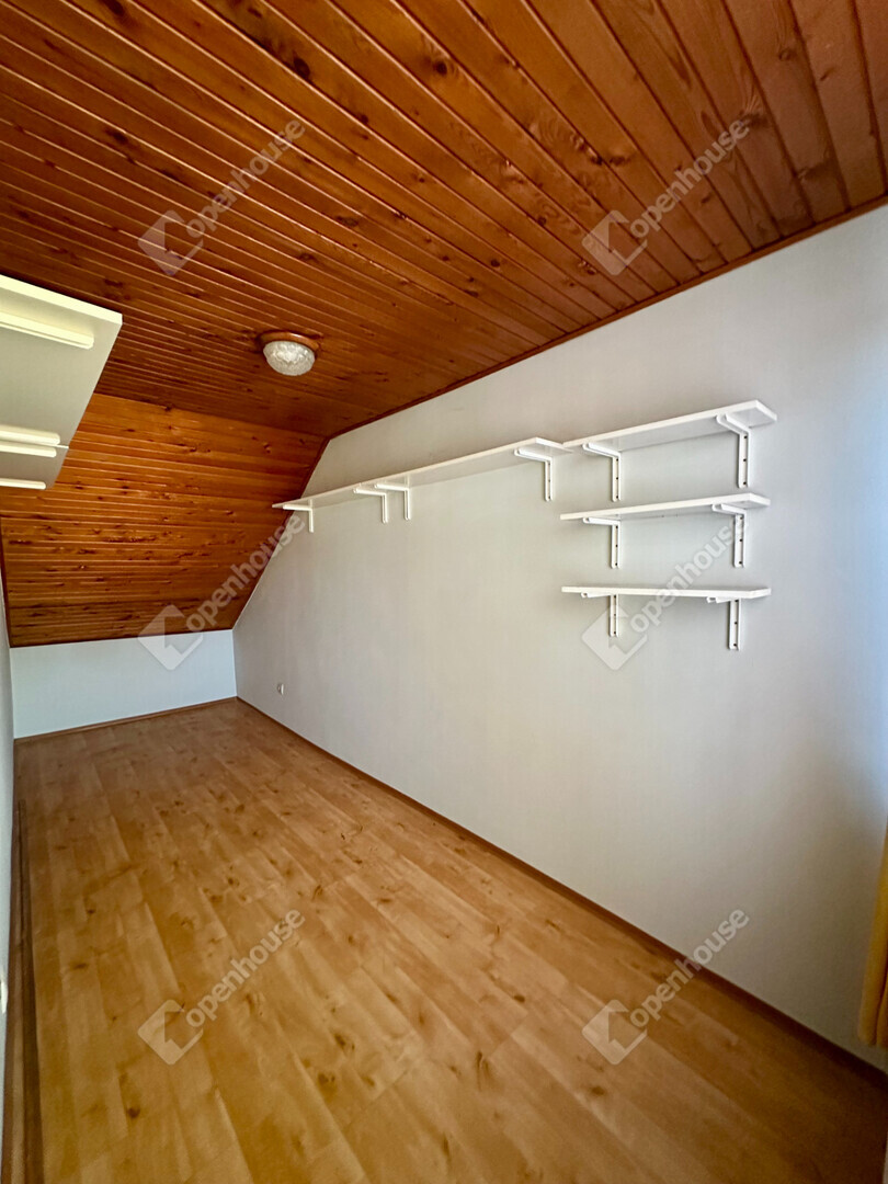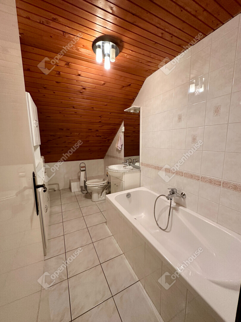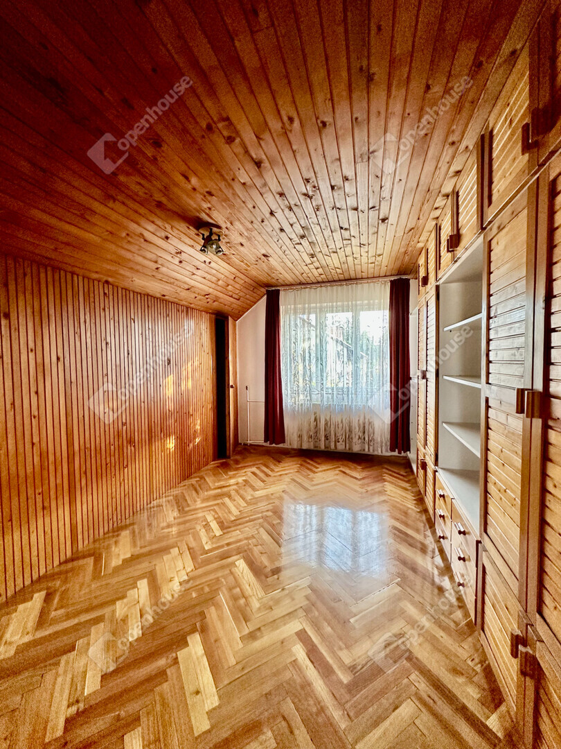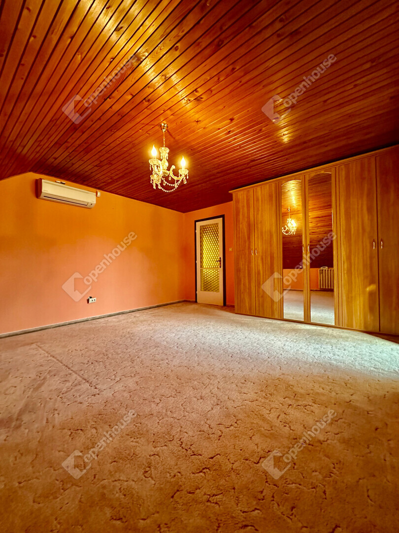Az emeleti szinten három kényelmes hálószoba található: az egyikhez erkély tartozik, ahonnan kellemes kilátás nyílik a parkosított kertre, a másik pedig külön gardróbhelyiséggel teszi kényelmessé a mindennapokat. Az emeleten kádas fürdőszoba is helyet kapott, a család pihentető esti rituáléihoz.
